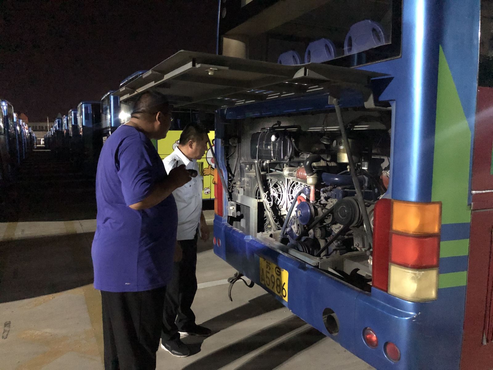 為了切實落實安全生產(chǎn)責(zé)任制,最大限度的減少事故的發(fā)生,2021年7月12日夜間,公交集團公交事業(yè)一部安管人員對植物油廠公交場站所有車輛進行夜查。