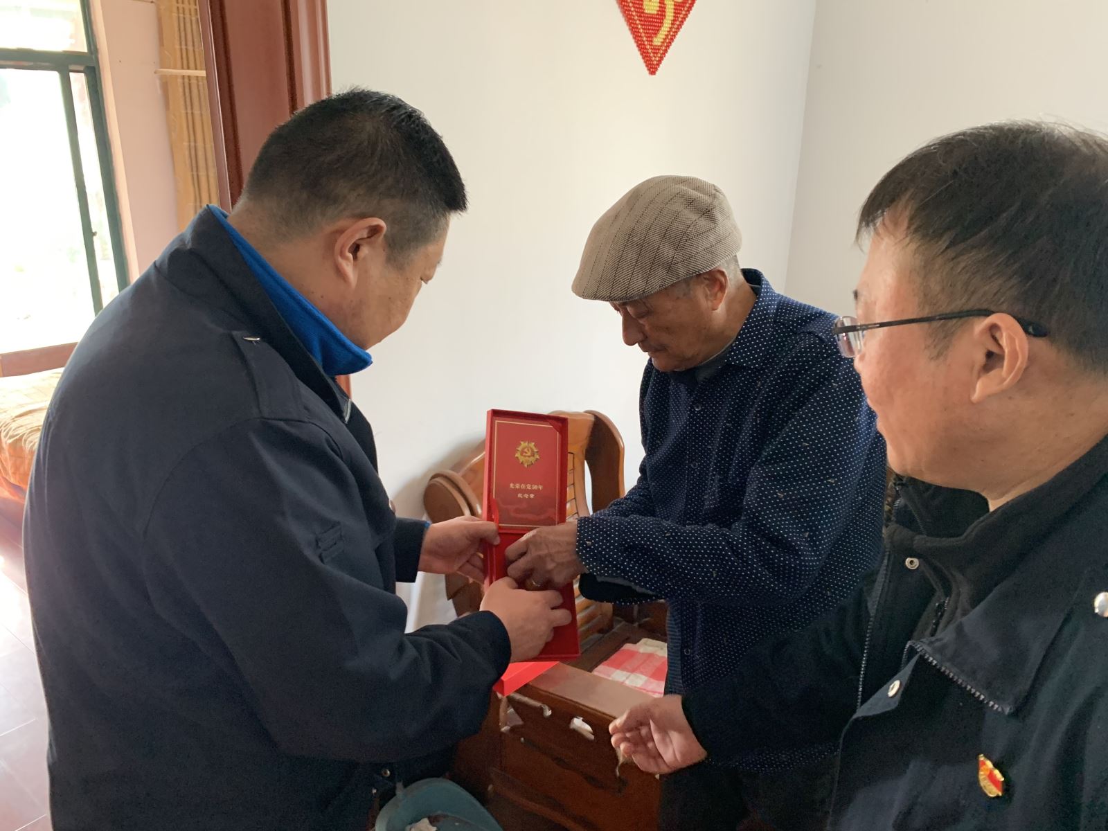 參觀后,在轄區(qū)領(lǐng)導(dǎo)的帶領(lǐng)下,支部書記寧濘對轄區(qū)困難黨員周大生走訪慰問。周大生大爺86歲,黨齡已有62年,老伴在幾年前去世,子女均在外地,老人現(xiàn)獨自居住在板橋安置小區(qū)。在2020年疫情防控期間,周大爺作為社區(qū)老黨員,不顧個人安危勇做社區(qū)志愿者,積極戰(zhàn)斗在疫情防控的第一線,得知這一情況,支部全體黨員深受感動。通過與老人親切交談,詳細(xì)了解老人的飲食起居和身體狀況、生活情況以及存在的困難,同時為周大爺送上米、面、油等慰問品。
