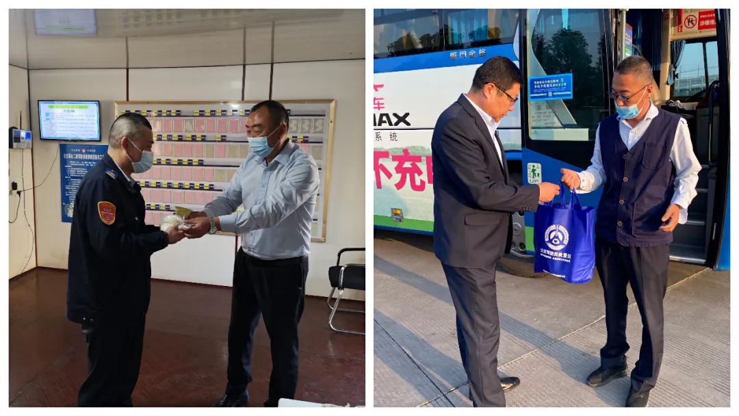 公交集團權屬各事業(yè)部管理人員為早班發(fā)車駕駛員送上溫馨的早餐,早餐中還有一個蘋果,寓意“平平安安”,希望他們高高興興出門,平平安安回家。