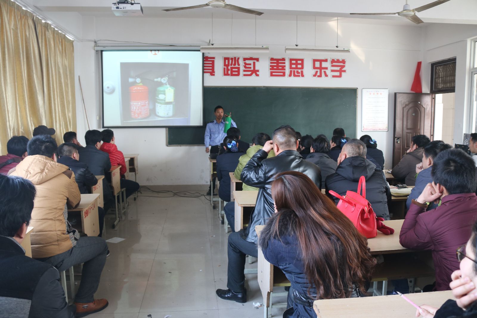 培訓中,趙教官針對公司實際情況,結合當前消防形勢,給大家播放了全國近年來公交車火災事故的視頻圖片,用真實案例讓大家認識到消防安全的重要性,同時,對公交車如何防自燃、發(fā)生火災如何自救、火災應急疏散逃生等進行了詳細地講解,參培人員認真記錄,并與教官互動,為了檢驗培訓的效果,還進行了現(xiàn)場筆試。