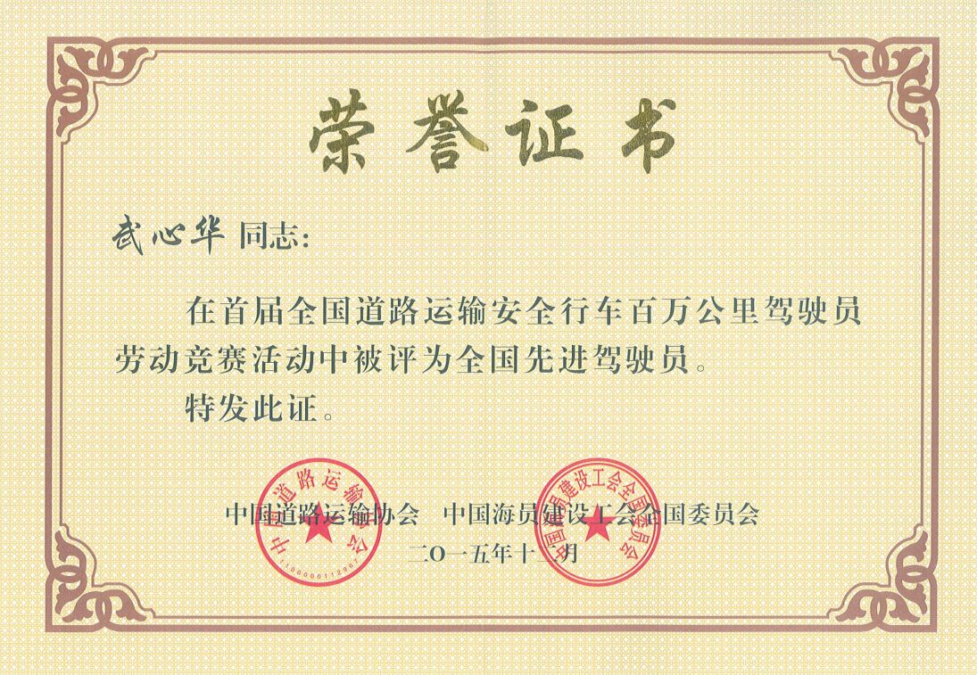 近日,海通公交公司沈濤、武心華2名駕駛員被全國道路運輸安全行車百萬公里駕駛員勞動競賽組委授予“全國先進駕駛員”榮譽稱號。目前,公司已有26名安全行車達百萬公里駕駛員,2016年公司將一如既往的加強安全生產工作,開展“強化基層、基礎、基本功”的建設,為全市人民提供“安全、文明、優(yōu)質”的出行環(huán)境。