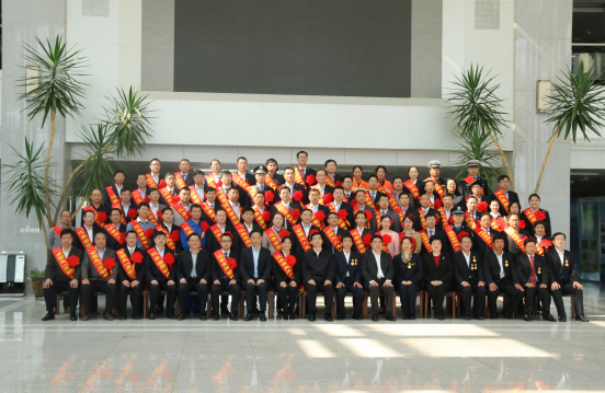 市委書記、市人大常委會主任楊省世、市委副書記、市長項雪龍、市委常委、組織部部長祁彪、市人大常委會副主任鄭平,與勞動模范合影留念。