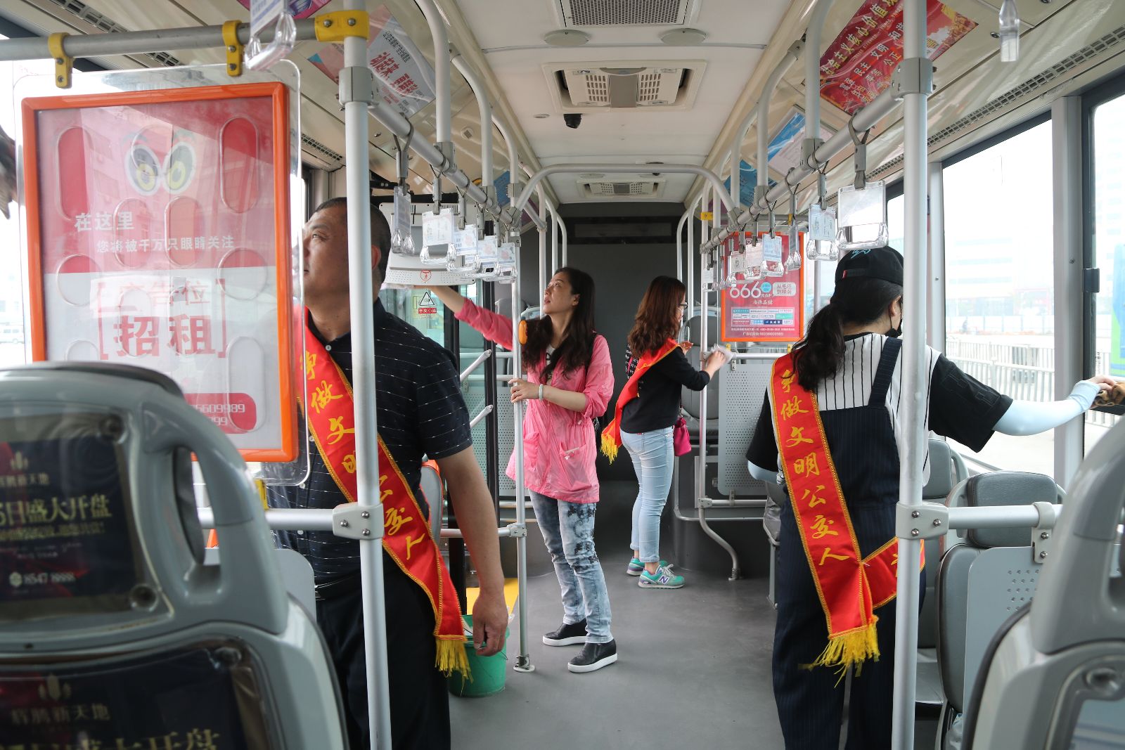 根據(jù)“與雷鋒車同行,共創(chuàng)文明公交”活動(dòng)方案部署,5月31日上午,公司黨群部組織機(jī)關(guān)部室工作人員,分成四組到火車站、新華公交總站、香溢公交總站和西門等四個(gè)公交首末站點(diǎn),對(duì)進(jìn)站車輛車廂衛(wèi)生一趟一掃一抹。參加活動(dòng)的機(jī)關(guān)管理人員,逐一打掃進(jìn)站車輛車廂衛(wèi)生,擦洗座位、窗裙、玻璃和扶手,為乘客乘車出行提供良好的乘車環(huán)境。