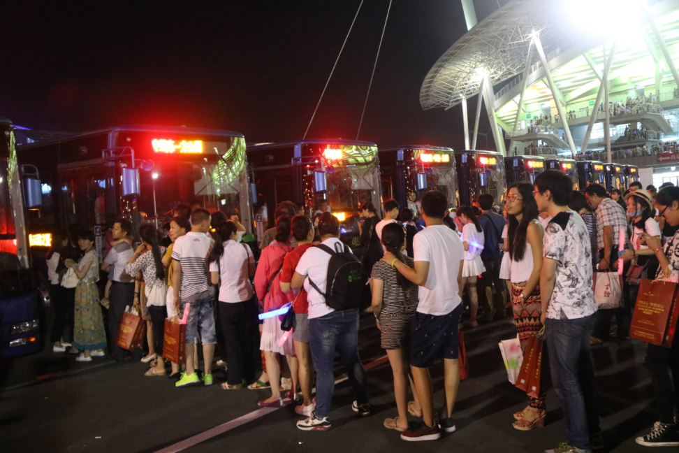 演唱會(huì)散場后,海通公交開通了5條直通車,分別途經(jīng)市區(qū)解放路、蒼梧路、海連路、朝陽路、港城大道等主干道,同時(shí)對BRT一號(hào)線進(jìn)行了班次加密。公司領(lǐng)導(dǎo)、各部門、各運(yùn)營單位主要負(fù)責(zé)人一同到達(dá)現(xiàn)場,共同進(jìn)行現(xiàn)場觀眾的輸送工作,確保了2016“連云港之夏”交通運(yùn)輸保障工作的圓滿完成。經(jīng)統(tǒng)計(jì),晚間散場期間,公司實(shí)際投放運(yùn)力55臺(tái),運(yùn)送觀眾約3750人次。