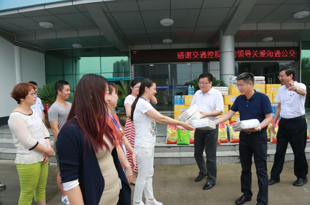 7月26日下午,交通控股集團(tuán)黨委書(shū)記、董事長(zhǎng)劉永能,黨委副書(shū)記、總經(jīng)理仲偉濤,工會(huì)主席王中永等集團(tuán)領(lǐng)導(dǎo)冒著高溫來(lái)到海通公交公司,親切看望慰問(wèn)了高溫下堅(jiān)守崗位的公交一線(xiàn)員工,為他們送去綠豆、白糖、純凈水、飲料等防暑降溫物品,并叮囑他們注意防暑降溫,以良好的狀態(tài)投入到工作中去,做好安全服務(wù)工作,服務(wù)好廣大乘客。劉永能等領(lǐng)導(dǎo)叮囑隨行的公交公司領(lǐng)導(dǎo),一定要關(guān)心員工的身心健康,尤其要做好夏季的防暑降溫工作,把“送清涼、送安全、送法律”活動(dòng)落到實(shí)處,讓廣大員工真正感受到組織的關(guān)愛(ài)。