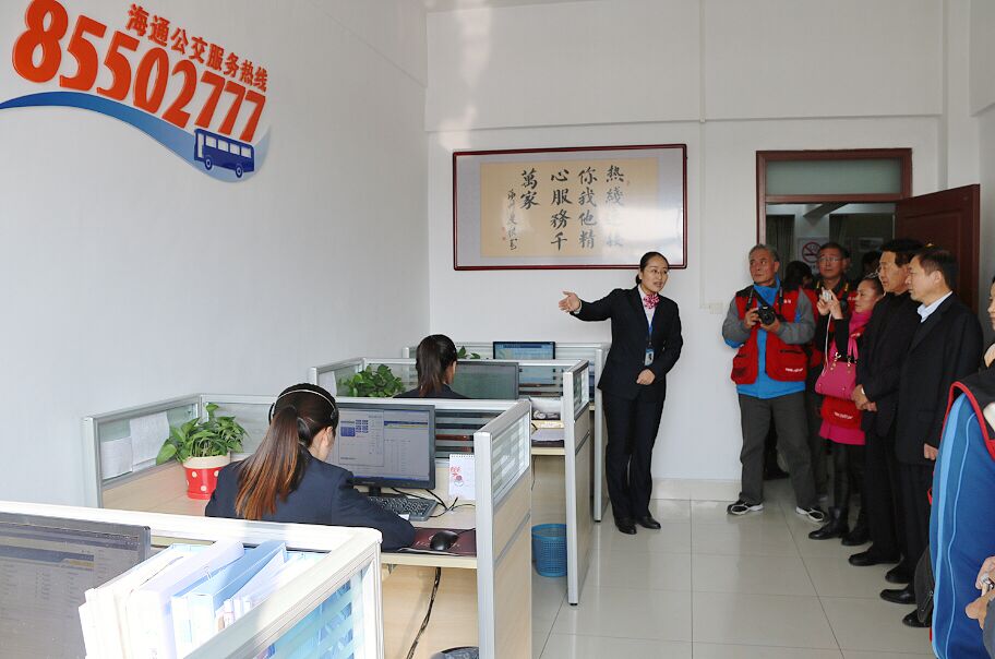來(lái)源:綜合辦公室 作者:倪子棠 為全面展示公交集團(tuán)近年來(lái)改革發(fā)展取得的成績(jī),11月5日,按照市交通控股集團(tuán)開展“國(guó)企開放日”活動(dòng)安排,邀請(qǐng)了市人大代表、政協(xié)代表、媒體記者、市民代表等各界人士約60人走進(jìn)公交,交通控股集團(tuán)工會(huì)主席王中永、辦公室主任曹素玲、公交集團(tuán)總經(jīng)理劉佃華、副總經(jīng)理趙立喜、羅軍及相關(guān)部室負(fù)責(zé)人參加活動(dòng)。 活動(dòng)中,參觀人員一行先后來(lái)到公交集團(tuán)信息指揮中心、收銀中心、新華充電站、充電站監(jiān)控中心及客服中心等地點(diǎn),總經(jīng)理劉佃華熱情為大家介紹BRT建設(shè)運(yùn)營(yíng)、BRT線路、站臺(tái)實(shí)時(shí)監(jiān)控、新能源車輛運(yùn)用、公交充電站建設(shè)發(fā)展、各充電站智能監(jiān)控等相關(guān)情況;在新華充電站,現(xiàn)場(chǎng)為參觀人員演示電動(dòng)公交車如何充電,讓市民進(jìn)一步了解到新能源電動(dòng)公交車低碳環(huán)保節(jié)能等優(yōu)勢(shì);在收銀中心,參觀人員了解到公交每天不僅要面臨大量的硬幣清點(diǎn)、兌現(xiàn)等繁重工作任務(wù),同時(shí)也存在著收到大量的殘幣紙幣假幣等無(wú)法兌換的困境;在公交客服中心,通過(guò)客服人員熱情細(xì)致的講解,了解到公交集團(tuán)通過(guò)服務(wù)熱線平臺(tái)如何為廣大市民提供優(yōu)質(zhì)、耐心、細(xì)致服務(wù),進(jìn)一步方便市民出行。 通過(guò)“國(guó)企開放日”活動(dòng),廣大市民走進(jìn)公交民生服務(wù)一線,深入了解到公交集團(tuán)近年來(lái)在信息化、科技化、環(huán)保新能源及提升服務(wù)等方面取得的成績(jī),為打造“科技公交、綠色公交、智慧公交、優(yōu)秀公交、人文公交”所做的努力和貢獻(xiàn),為下一步推動(dòng)公交更好更快發(fā)展提供了動(dòng)力。