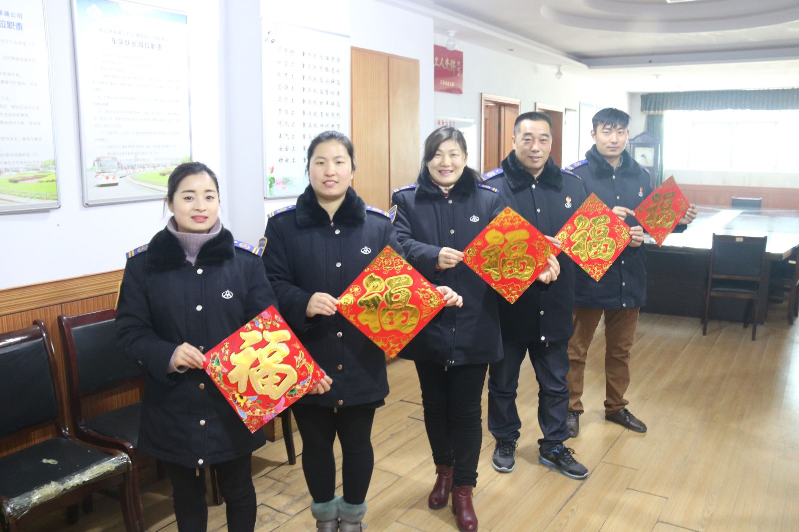 公交新浦公司貼對聯(lián)、貼福字喜迎金雞春節(jié)