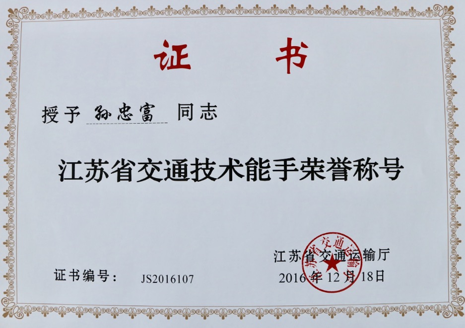 近日,公交集團(tuán)張強(qiáng)、孫忠富、于緒林被江蘇省交通運(yùn)輸廳授予第三批“交通技術(shù)能手”榮譽(yù)稱(chēng)號(hào),這是繼樊燕飛獲此項(xiàng)榮譽(yù)后,又有3位同志獲此殊榮。
