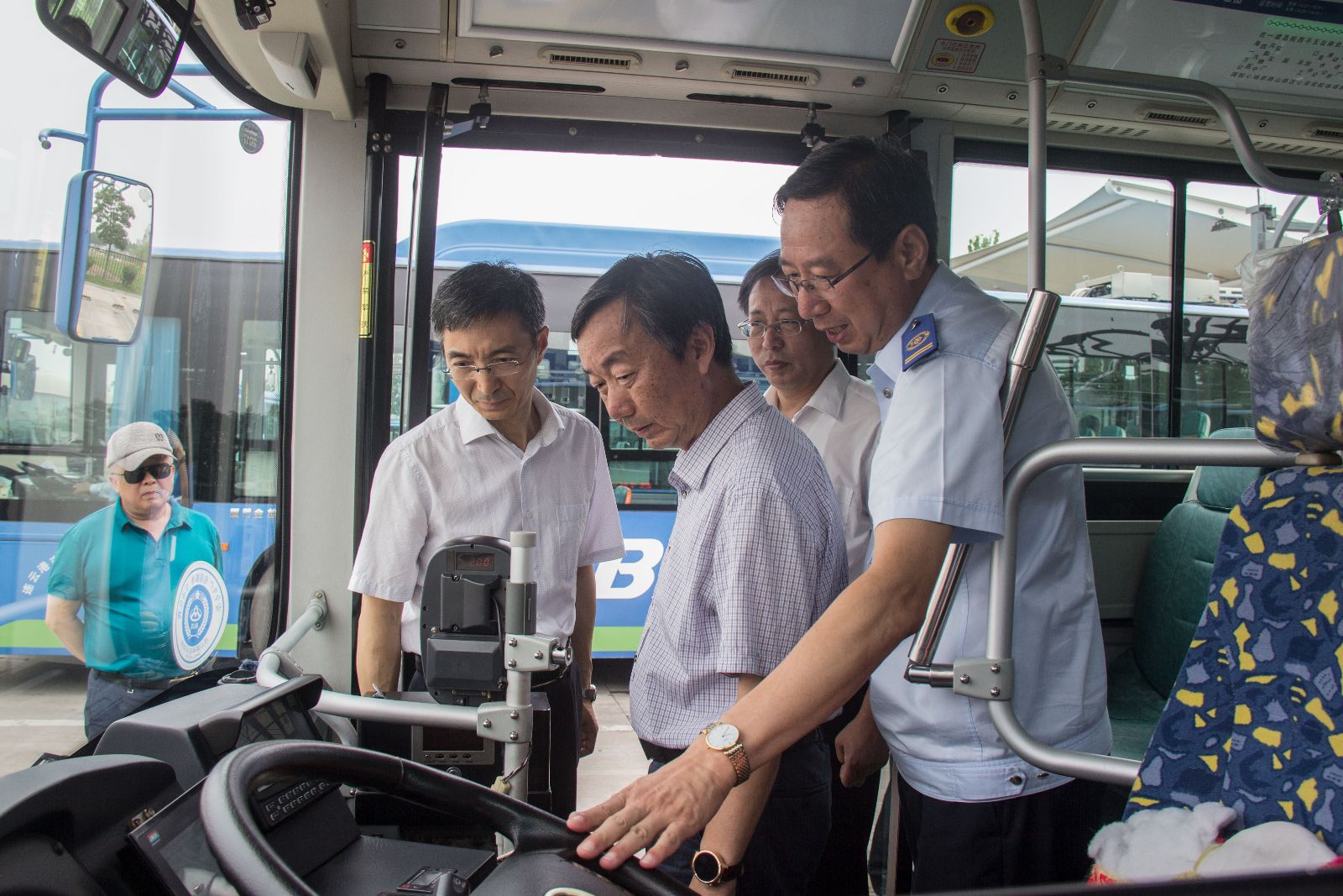 董春科一行先后來到馨海名郡、西門、漢高華威公交停車場和西城充電站,實地查看了公交場站現(xiàn)狀并走進(jìn)公交車廂內(nèi),進(jìn)一步了解掌握公交車的車型、能耗、技術(shù)狀況等,并與一線駕駛員進(jìn)行了親切交談,對駕駛員的勞動強度、工作時間等問題進(jìn)行了仔細(xì)詢問。