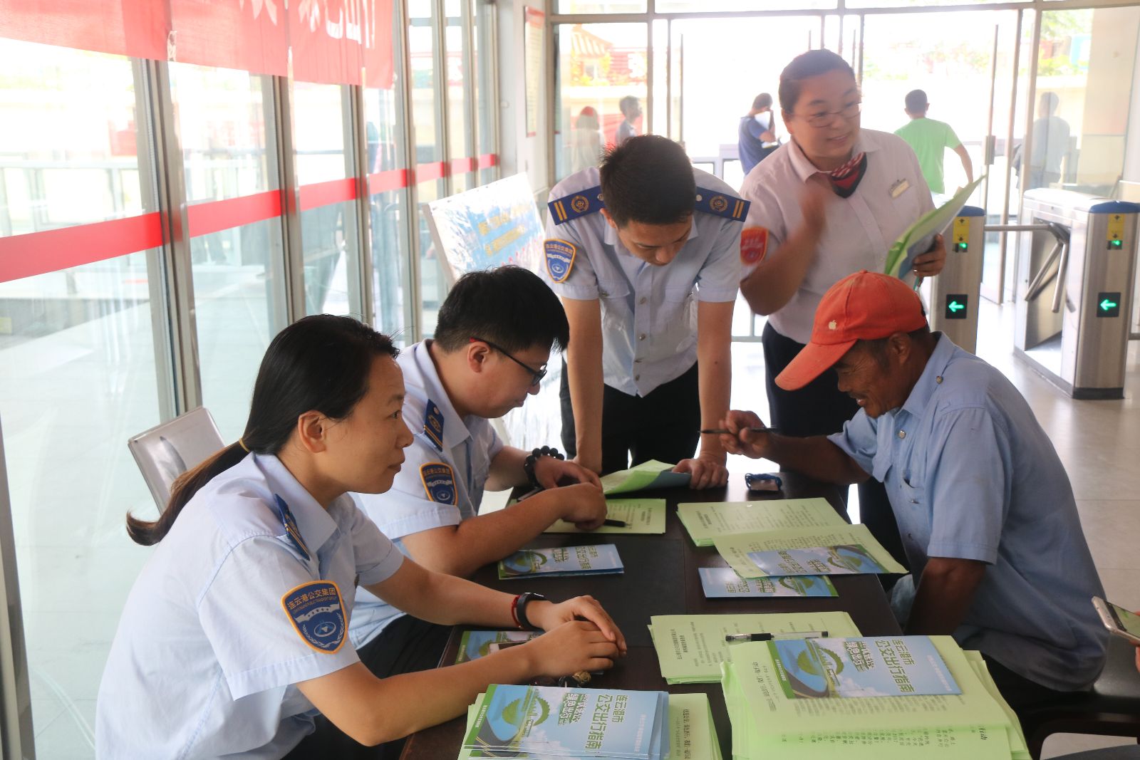 9月24日上午,根據(jù)2017年“公交出行宣傳周”主題活動的安排,公交集團組織開展了公交出行宣傳周集中宣傳活動,在海州客運站、購物中心南、師專、萬達廣場四處主要客流集散地設立宣傳咨詢點,每個宣傳點均懸掛橫幅,安排至少4名工作人員現(xiàn)場向市民群眾發(fā)放“公交出行宣傳周”宣傳冊、連云港市公交出行指南,宣傳公交“一卡通”政策、掌上公交APP、“掃碼乘車”等實施智能公交信息化服務措施,同時以調查問卷的方式與市民進行互動,征求市民建議和意見,引導社會群眾支持和參與城市公共交通發(fā)展。