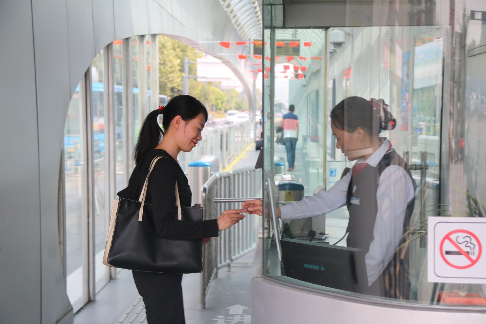 作為BRT的一名站務(wù)員,看到身邊的文明在悄悄的發(fā)生,心中充滿了一種喜悅和自豪。想起以前,乘坐公交車時,人們一擁而上,不排隊(duì)的現(xiàn)象經(jīng)常發(fā)生,前推后擠,身材瘦弱的人總會被擠倒,上車后車廂內(nèi)充滿了喧嘩與吵鬧,沒有片刻安寧,乘坐公交出行是一件痛苦的事情。2012年我市開通了BRT快速公交,道路變得寬敞了,公交車輛也已換成嶄新的,如今純電動的綠色環(huán)保公交車也已運(yùn)行,港城的人們出行更加方便,而乘客文明乘車的行為也有了很大的改觀,有公交卡的人依次刷卡進(jìn)站,沒卡的群眾投幣進(jìn)站,人們也開始自覺的排隊(duì),BRT站臺內(nèi)少了許喧嘩,多了份文明。雖然有時BRT車內(nèi)也有不文明的行為出現(xiàn),但大多數(shù)人都能遵守秩序,體現(xiàn)文明,做到不干擾他人。遇到老人或兒童乘車,經(jīng)常有乘客能主動讓座,尤其是年輕人,雖然他們忙碌,辛苦,但能主動關(guān)心和體恤老人和兒童,本身就是一種文明素質(zhì)的體現(xiàn)。當(dāng)文明成為一種習(xí)慣時,那我們的社會將變得更加和諧和健康。在我日常的站務(wù)執(zhí)行中,經(jīng)常能遇到個別乘客攜帶違禁物品乘車,經(jīng)過耐心的解釋與勸導(dǎo),乘客們都能聽從規(guī)勸,不再攜帶危險(xiǎn)品上車。在站臺內(nèi)候車的群眾,雖然也有抽煙的,經(jīng)過解說后,都能自覺的服從我們乘務(wù)人員的勸導(dǎo),主動掐滅煙蒂。吐痰、亂扔果皮的現(xiàn)象也已基本杜絕。偶然遇到有危害社會及群眾的事件時,很多乘客都能挺身而出,維護(hù)社會正義。這都是港城人民自BRT 開通以來,取得的文明改變。