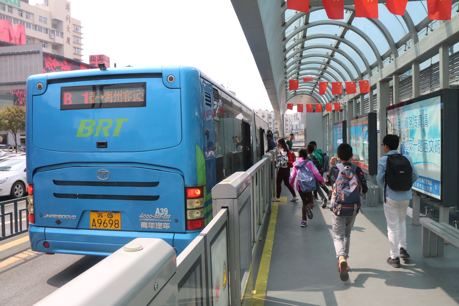 上下班高峰時段,每天BRT站臺上都密密麻麻站滿了焦急候車的乘客。每當(dāng)一輛輛公交車進(jìn)站時,車門打開的瞬間,下車的乘客們從后門依次走出,上車的乘客按順序依次從前門進(jìn)車,老人兒童有人攙扶,年輕人禮讓老年人,這是我每天都能看到的一幕。