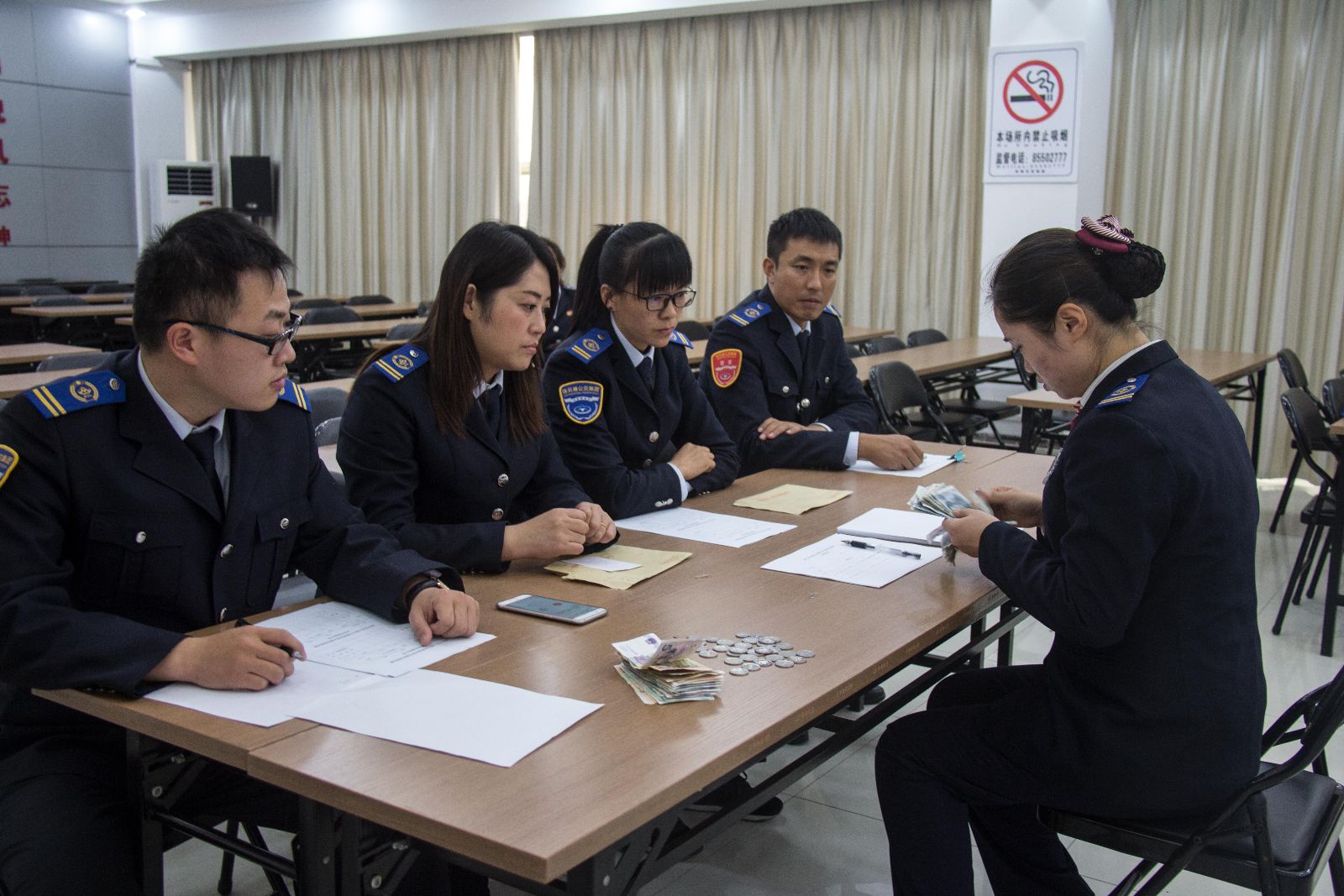 名參賽選手都在認真作答,爭取自己能交上一份滿意的答卷。理論考試現(xiàn)場改卷,按分數(shù)高低進行排名,成績前15名選手參加普通話和點鈔測試環(huán)節(jié),后15名直接淘汰。普通話測試和點鈔測試環(huán)節(jié)同步進行,入圍的15名選手按抽簽號順序依次進入相應(yīng)考場,在嚴(yán)格、規(guī)范、緊張、有序的測試中,各位參賽選手充分發(fā)揮自己在工作崗位中的業(yè)務(wù)技能和操作水平,認真閱卷、細心作答,確保了普通話和點鈔測試競賽環(huán)節(jié)的順利完成。
