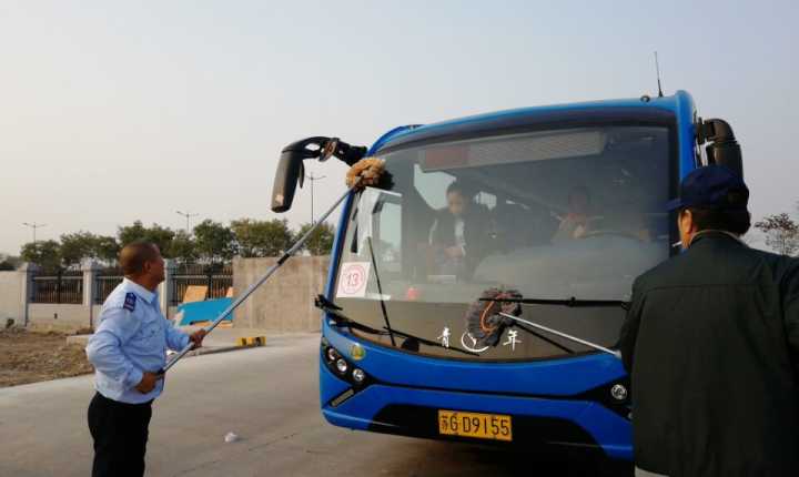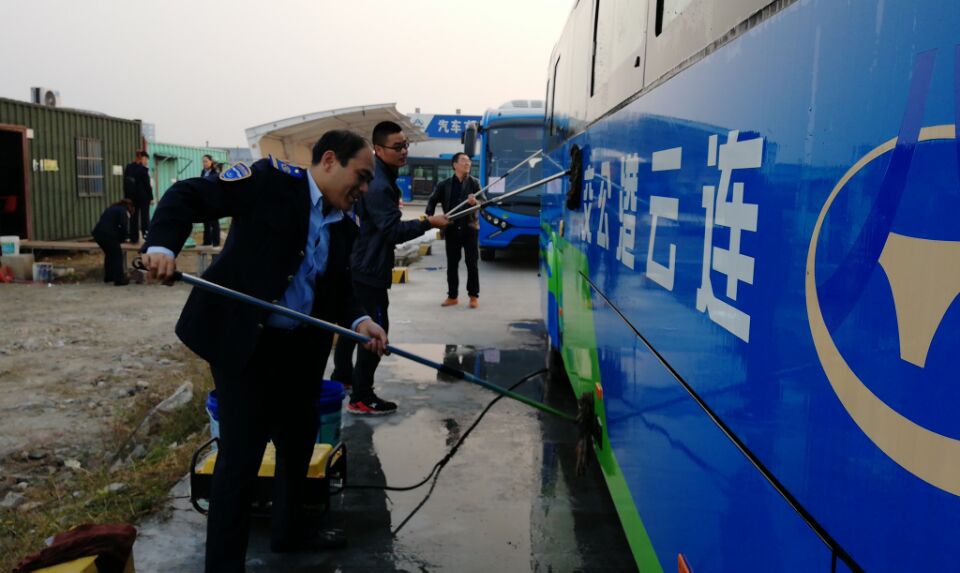 公交海州公司組織人員清洗2017年徐圩馬拉松賽事輸送車(chē)輛