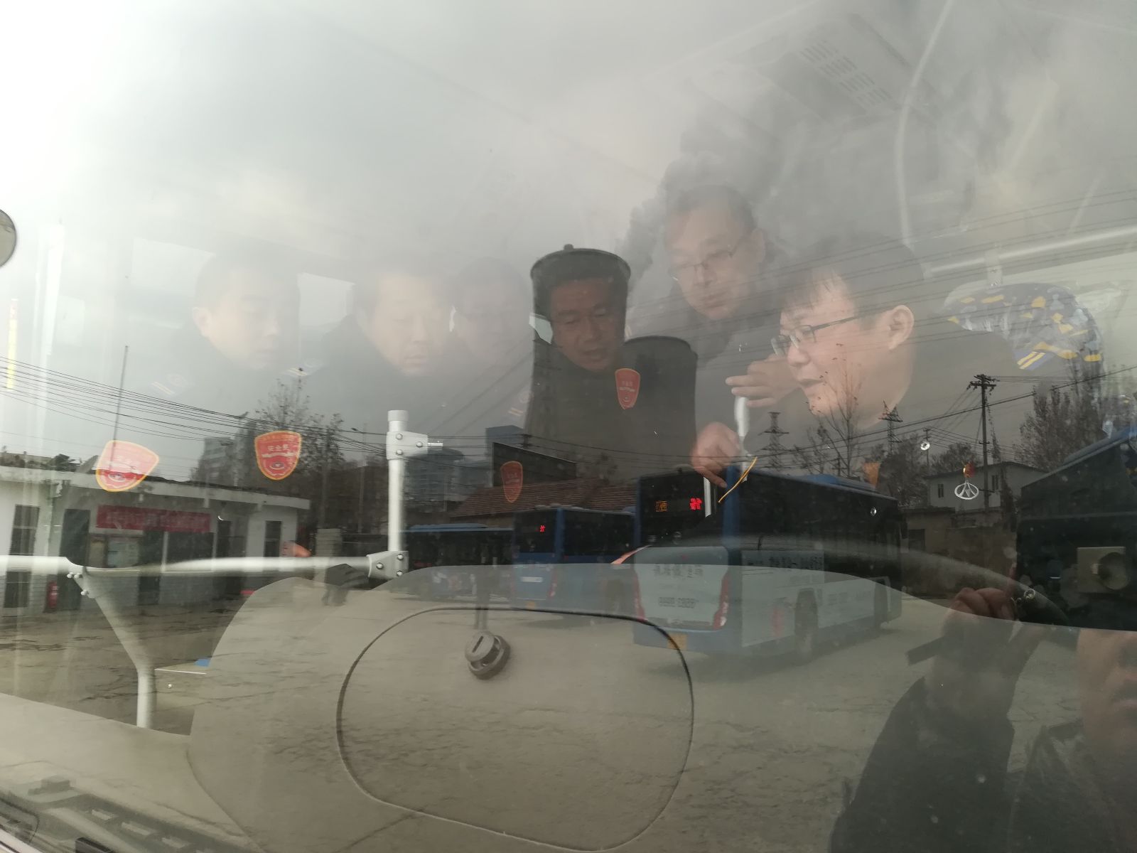 公交集團(tuán)海州公司一車隊駕駛員利用在站場內(nèi)充電休息時間交流純電動車駕駛心得相互學(xué)習(xí)。