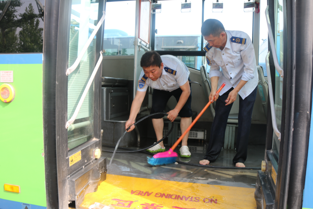 公交集團(tuán)快速公司清洗B1K車輛為創(chuàng)建文明城市助力