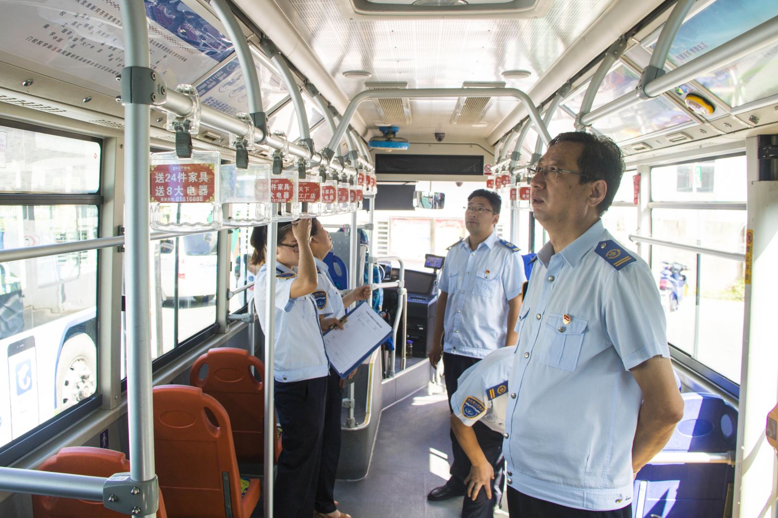 劉佃華一行深入黨校、海州客運(yùn)站、香溢、華威等公交場(chǎng)站,對(duì)車廂內(nèi)的衛(wèi)生情況、創(chuàng)文宣傳廣告張貼情況、各場(chǎng)站辦公場(chǎng)所的衛(wèi)生情況、創(chuàng)文氛圍進(jìn)行細(xì)致檢查。通過(guò)檢查,劉佃華指出:雖然整體創(chuàng)文、衛(wèi)生情況良好,但辦公場(chǎng)所在衛(wèi)生死角方面清理不到位,各權(quán)屬單位要嚴(yán)格對(duì)照創(chuàng)文標(biāo)準(zhǔn),明確創(chuàng)文工作要求,要重點(diǎn)在環(huán)境衛(wèi)生、服務(wù)水平和創(chuàng)文公益廣告宣傳氛圍等方面下功夫,查漏補(bǔ)缺,認(rèn)真開(kāi)展自查自糾,確保創(chuàng)文工作落到實(shí)處、取得實(shí)效。