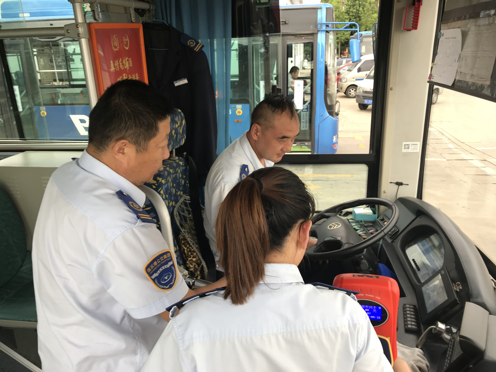 在西門首末站內(nèi),公交集團海通公交公司六分公司副經(jīng)理孫海棠正帶領人員緊鑼密鼓的忙著游1路調(diào)車工作,孫海棠表示:游1路新車調(diào)換前期準備工作已基本完成,車內(nèi)服務標識、清掃工具、提示標語等已全部張貼到位,車輛衛(wèi)生全部打掃完畢,但由于車內(nèi)未安裝下車鈴、遮陽板、內(nèi)后視鏡,給駕駛員安全駕駛及乘客下車帶來諸多不便。對此,寧濘表示:將及時與汽車服務公司人員對接溝通,盡快予以協(xié)調(diào)解決。同時,六公司也要全面做好車輛更新后線路運營調(diào)度工作,確保車輛安全運營、駕駛員優(yōu)質(zhì)服務。