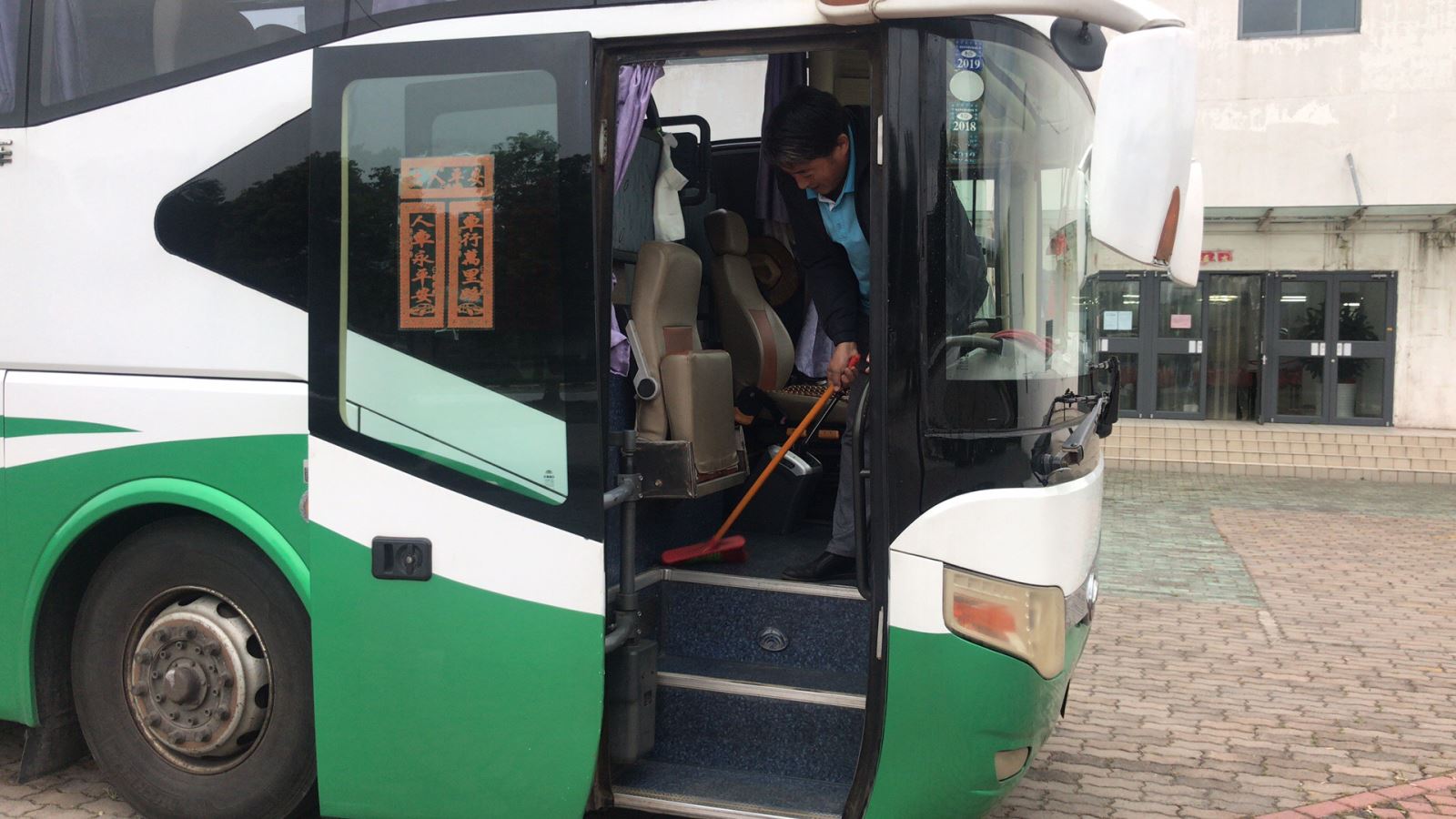 駕駛員打掃車廂,給乘客提供一個(gè)整潔的乘車環(huán)境。
