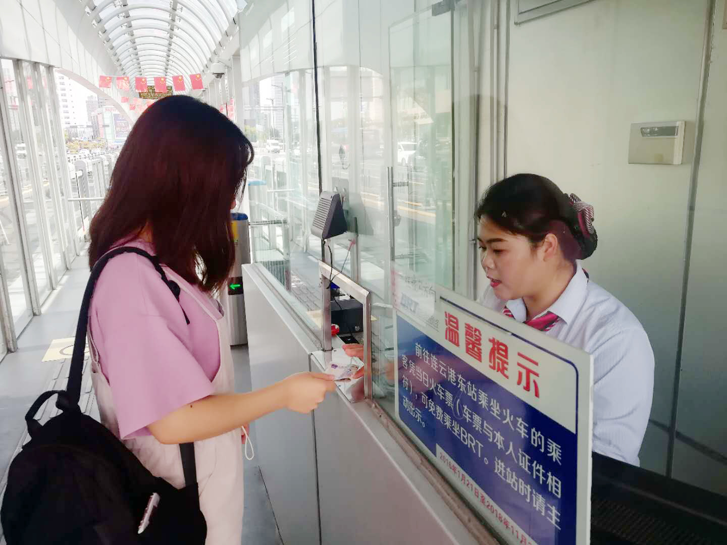站務(wù)員堅(jiān)守崗位,為乘客售票;