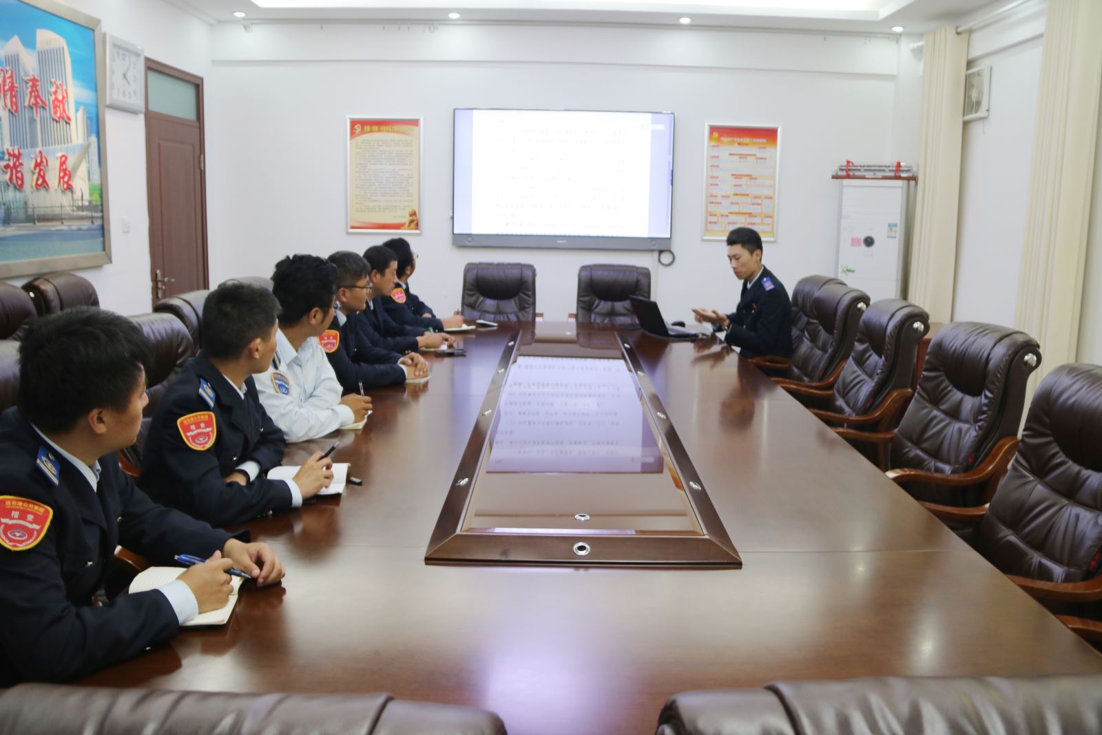 稽查大隊(duì)是公交集團(tuán)維護(hù)集團(tuán)利益、強(qiáng)化制度執(zhí)行、保障正常工作秩序機(jī)構(gòu),隨著公交行業(yè)發(fā)展趨勢(shì)以及社會(huì)各界人士對(duì)公交服務(wù)質(zhì)量更高的期許,稽查大隊(duì)當(dāng)前的工作已不能滿足企業(yè)的發(fā)展要求,隊(duì)伍標(biāo)準(zhǔn)化建設(shè)勢(shì)在必行。培訓(xùn)中,黃濤帶領(lǐng)大家重新學(xué)習(xí)了部門職責(zé)與崗位職責(zé),明確工作定位與崗位目標(biāo),對(duì)日常工作中的業(yè)務(wù)流程、工作方式方法以及溝通技巧進(jìn)行了模擬訓(xùn)練,要求稽查隊(duì)全體人員既要做到嚴(yán)格履行自身崗位職責(zé),又要做到人性化的管理。同時(shí),黃濤對(duì)企業(yè)當(dāng)前發(fā)展形勢(shì)以及近期重要事項(xiàng)進(jìn)行了傳達(dá),以此來提高稽查隊(duì)全體人員對(duì)企業(yè)發(fā)展及對(duì)本職工作的認(rèn)知度,從根本上理清工作思路,提振隊(duì)伍士氣。