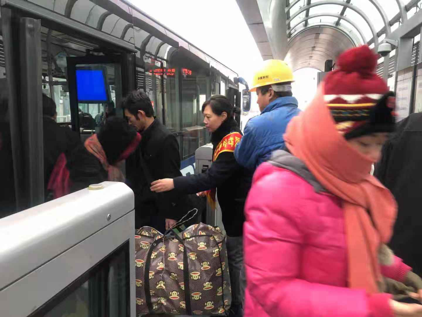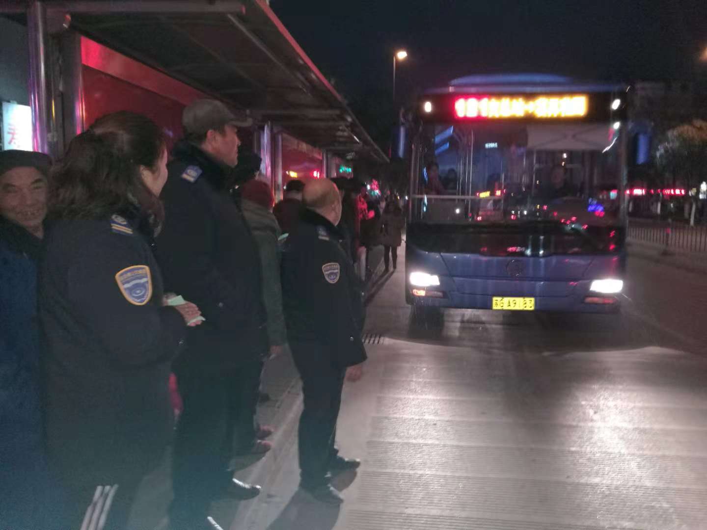 志愿服務(wù)期間,天氣最低溫度達(dá)到了零下7度,12月11日,天空還飄起了雪花,檢查人員不畏嚴(yán)寒,雨雪不改的堅(jiān)守在崗位上,用實(shí)際行動(dòng)助力創(chuàng)文工作的開展。志愿者們?cè)谡军c(diǎn)提醒駕駛員著裝規(guī)范、文明用語、禮貌待客,保證車輛衛(wèi)生整潔,文明行車。在客流較多時(shí),志愿者們及時(shí)疏導(dǎo)乘客文明乘車,做好文明引導(dǎo)服務(wù)工作,強(qiáng)化市民交通安全意識(shí),還為他們提供轉(zhuǎn)乘咨詢服務(wù),幫助老弱病殘?jiān)械忍厥獬丝陀行虺塑?、搬運(yùn)行李。通過大家兩天的努力,不僅贏得了市民的支持和認(rèn)可,乘客們有序乘車,也創(chuàng)文工作深入人心。