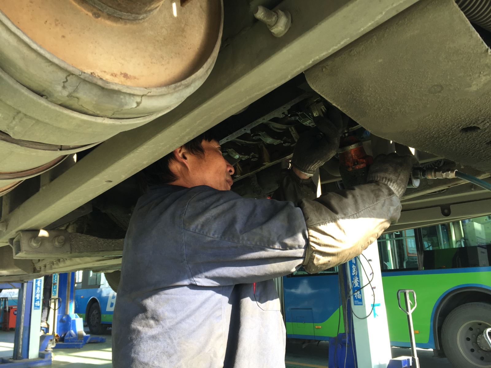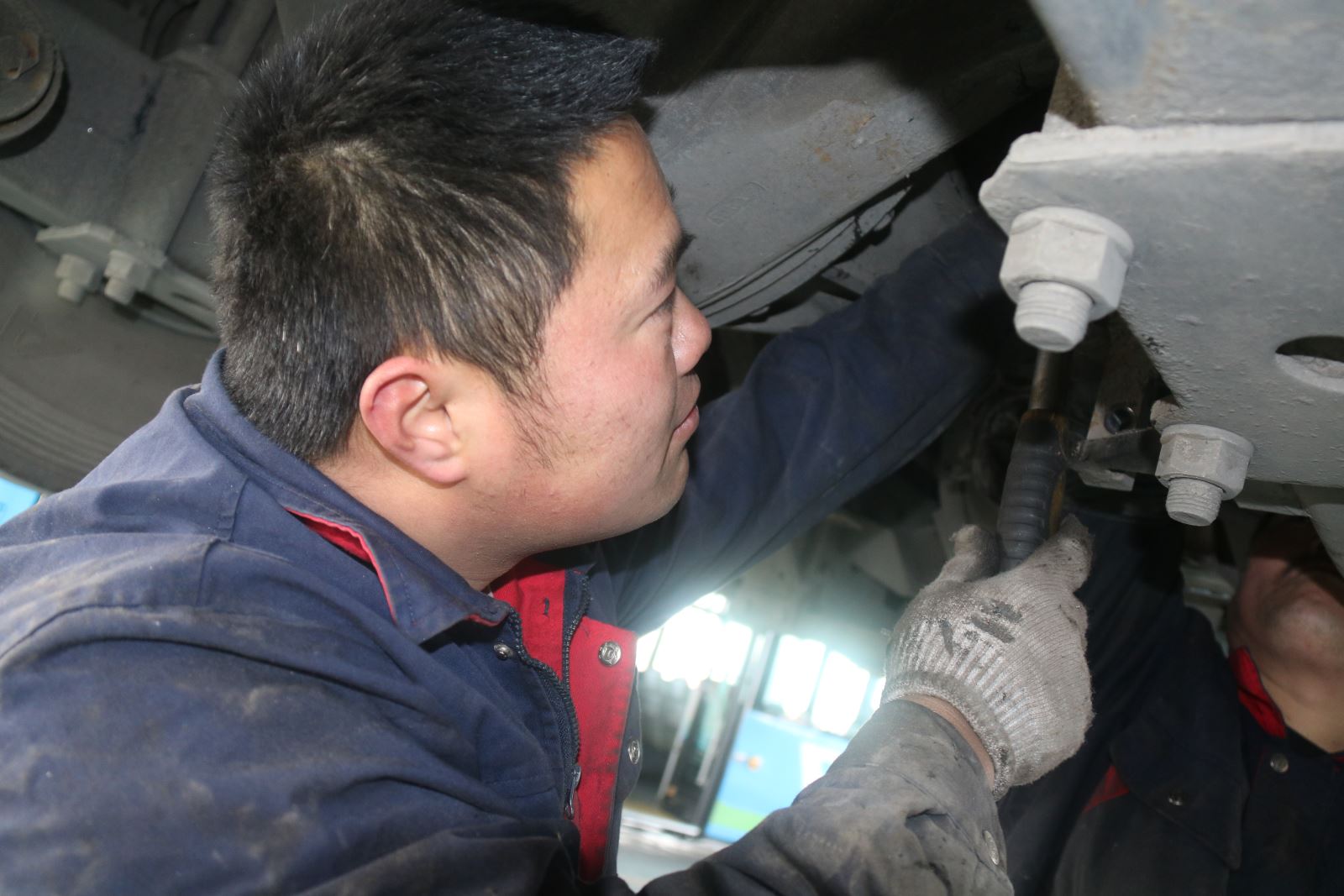 新一年第一天,安機(jī)人員認(rèn)真維護(hù)公交車輛,見(jiàn)縫插針檢查車輛的每個(gè)細(xì)節(jié)