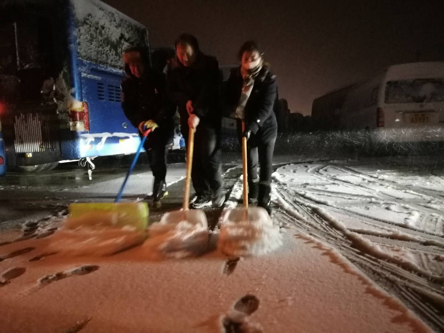 31日凌晨4點左右,公交集團各事業(yè)部領(lǐng)導(dǎo)班子、安管人員嚴格按照惡劣天氣應(yīng)急預(yù)案和突發(fā)事件處置流程的要求奔赴各路段,檢查路面、橋段、涵洞積雪結(jié)冰情況,第一時間將道路狀況以電話、視頻、照片的形式反饋至各調(diào)度室和駕駛員,方便調(diào)整行車走向;全體駕駛員、站務(wù)員提前到崗,清理車輛、站臺、場站內(nèi)的積雪,給車輛預(yù)熱,做好發(fā)車前準備工作;各場站相關(guān)負責人面對面做好駕駛員安全交代,叮囑駕駛員低速慢行、保持安全車距;運營人員在公交客流密集站、首末站,指揮疏導(dǎo)車輛,協(xié)助維持秩序,加強安全行車現(xiàn)場管理,確保不出現(xiàn)積壓客流的情況。