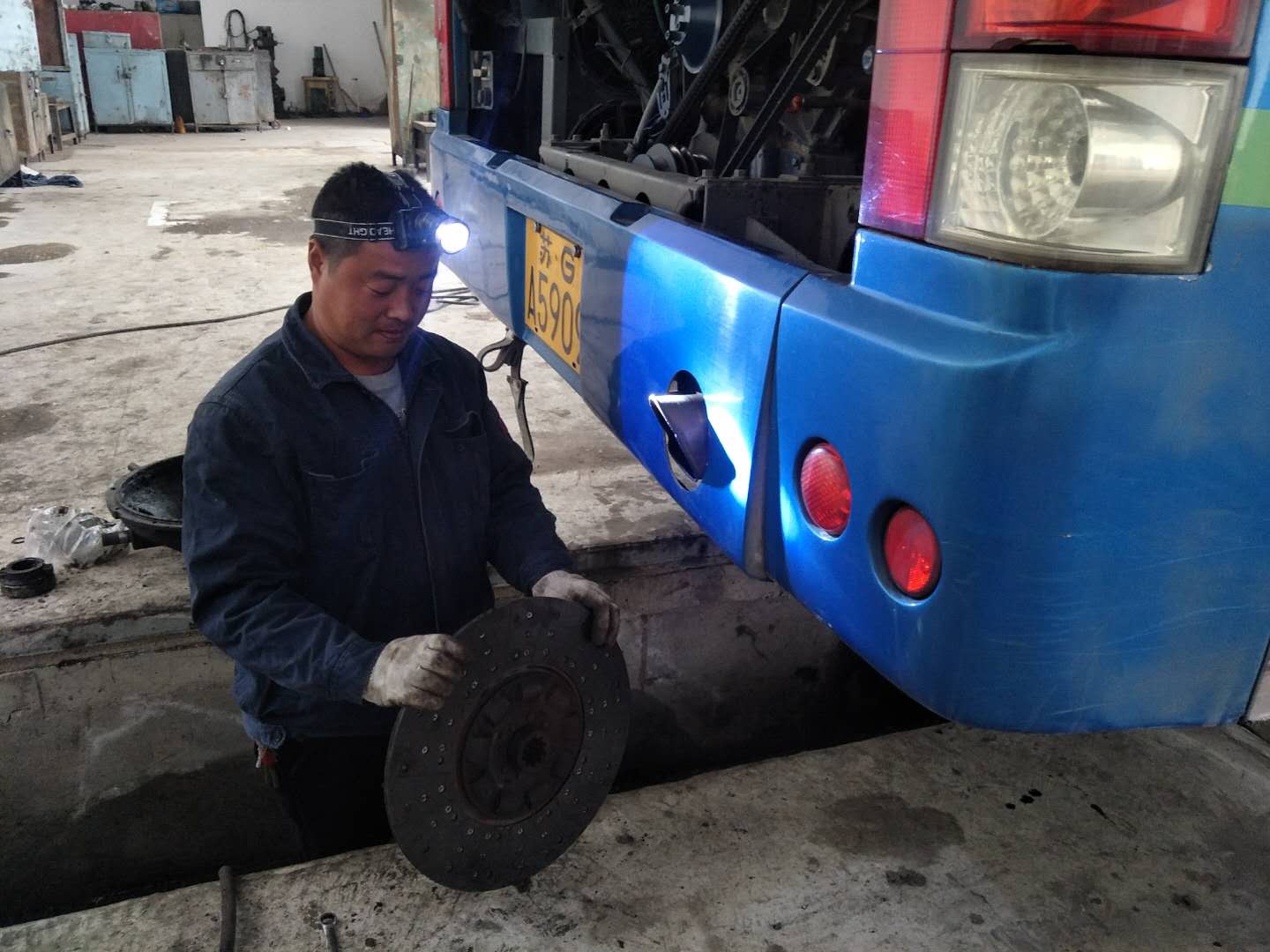 地溝只有幾十厘米寬,半人高,而且光線很暗,劉長倫佝僂著身子,帶著工作燈,鉆了進去,為了吊變速器,修離合器,他得常常半蹲在一塊板上,彎著腰,將上半身探進車底維修、保養(yǎng)車輛,短暫地結(jié)束工作從地溝鉆出來時,手上、身上已經(jīng)滿是機油和污垢。對于這樣的狀態(tài),劉長倫習(xí)以為常,他每天進入車間的維修車輛有40臺次左右,每個月至少需給七八十輛公交車做二級保養(yǎng),修理工每天6:30上班,20:30下班,如果遇到緊急維修任務(wù),還得加班加點。炎熱的夏季更加難熬,地溝又悶又熱,一天下來,每個人沾滿油漬的衣服、頭發(fā)都是濕了又干、干了又濕。遇上修發(fā)動機這樣的活,為了避免帶入雜物,也不能帶手套,周邊都是金屬部件,不小心磕了碰了,在所難免,每個修理工的手上、胳膊上都有工作造成的劃傷。