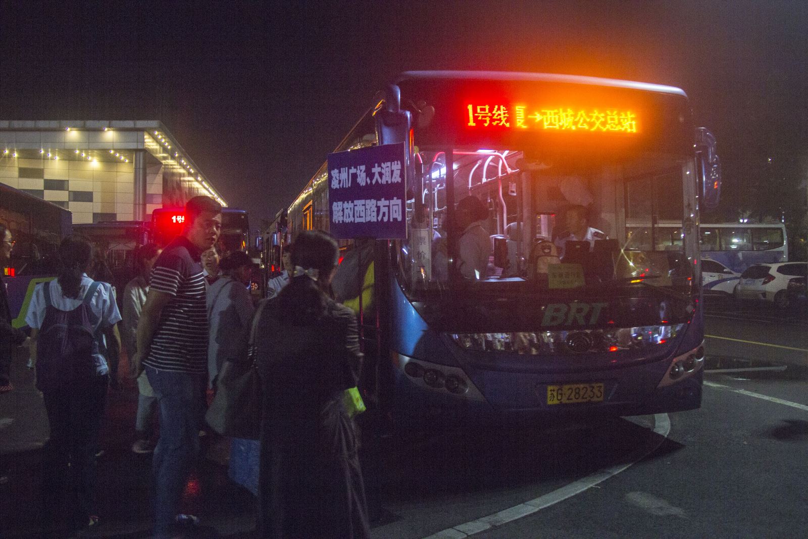 演唱會散場后,公交集團(tuán)投入50臺運(yùn)力在體育中心東門停車場等候,結(jié)合客流出行需求,分別開通了途經(jīng)市區(qū)解放路、蒼梧路、海連路、朝陽路、港城大道等主干道的5條直通車,同時(shí)對BRT一號線進(jìn)行了班次加密。集團(tuán)領(lǐng)導(dǎo)班子成員、機(jī)關(guān)各部門、權(quán)屬單位主要負(fù)責(zé)人一同到達(dá)現(xiàn)場,共同參與現(xiàn)場觀眾的輸送工作,確保2019“連云港之夏”交通運(yùn)輸保障工作的圓滿完成。經(jīng)統(tǒng)計(jì),演唱會散場后公交集團(tuán)現(xiàn)場疏散客流共約2045人。