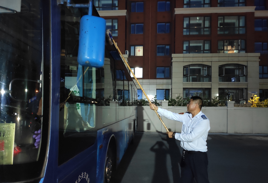 深夜,值班的公交人沒有絲毫倦意,巡視場站,一輛輛檢查停放在場站里的公交車是否關(guān)好電源、門窗,拔出鑰匙,檢查輪胎、發(fā)動機,用滿身的汗水和滿手的油漬,胳膊、腿上被蚊子“親吻”過的痕跡總是讓他們的嚴(yán)肅的臉上多了幾分可愛,也是因為如此,才保障了新的一天每輛公交車正常運行。