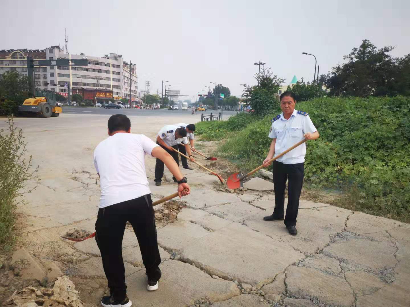 江化北路停車場(chǎng)內(nèi)每天出入公交車輛達(dá)數(shù)百臺(tái)次,近日,由于天氣連續(xù)高溫和暴雨的沖刷,導(dǎo)致場(chǎng)站出口處部分路面出現(xiàn)坑槽、沉陷等狀況,對(duì)出入公交車輛底盤造成嚴(yán)重安全隱患,也給上下班員工的通行帶來不便。公交集團(tuán)經(jīng)營發(fā)展事業(yè)部佳連分公司經(jīng)理武傳德立刻行動(dòng),召集管理人員拿起鐵鍬扥工具修補(bǔ)破損路面,大家將泥土和沙石填置到低洼損壞的路坑中,為提高效率,有的同志甚至摒棄工具,徒手搬運(yùn)磚石和石塊,不到1小時(shí),坑洼的路面被修復(fù)平整。