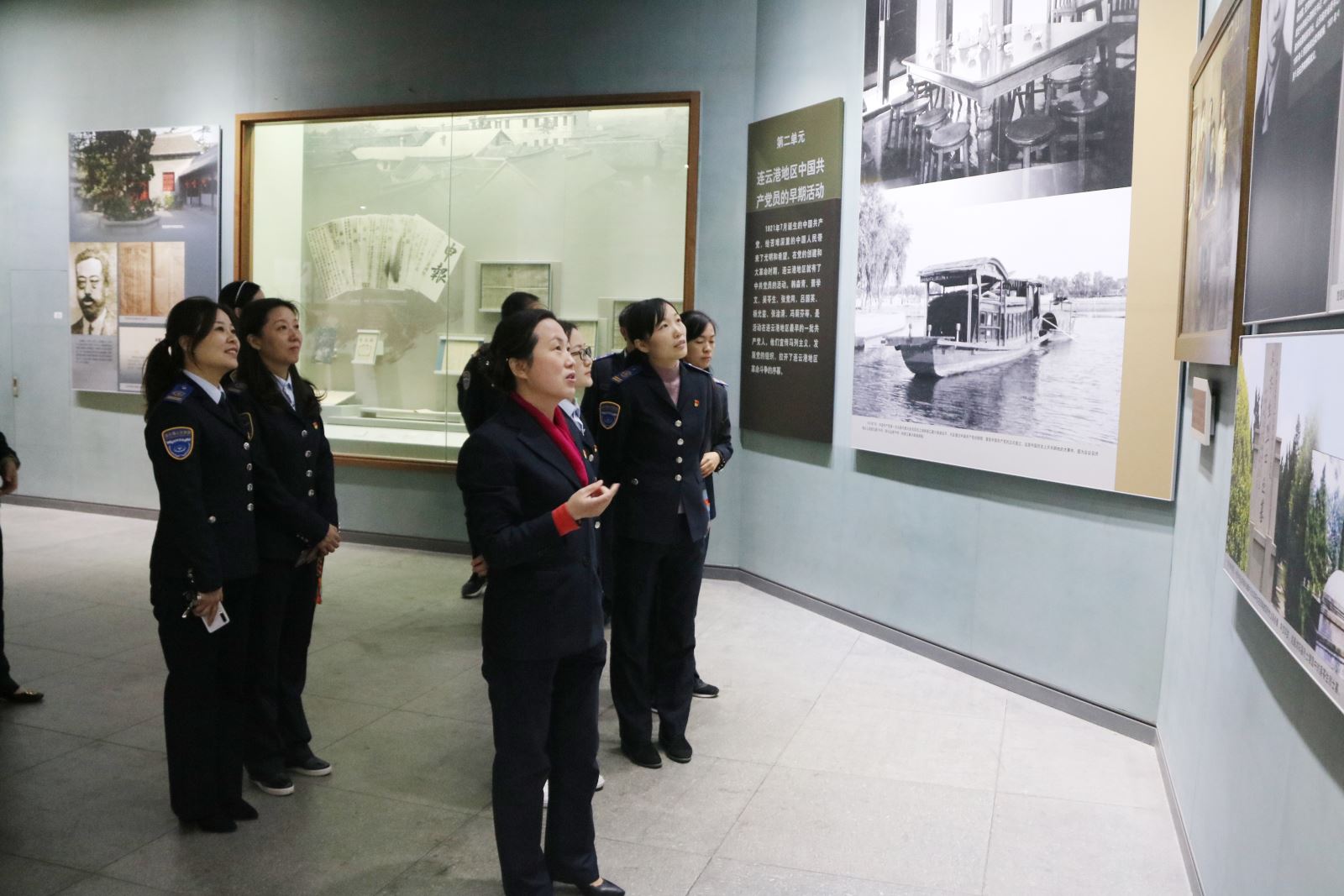 在革命紀念館展館大廳,同志們列隊肅穆,在黨旗的見證下,重溫入黨誓詞,莊嚴宣誓。儀式結束后,全體黨員集中參觀了一樓展廳,認真參觀及了解了早期黨組織的發(fā)展情況、土地革命時期,反帝反封建的農(nóng)民武裝革命、海屬地區(qū)抗日情況等,連云港土地上早期的共產(chǎn)黨人、為連云港地區(qū)的革命運動做出貢獻的革命先輩、以及連云港保衛(wèi)戰(zhàn)、小沙東海戰(zhàn)等發(fā)生在連云港地區(qū)的著名戰(zhàn)斗。