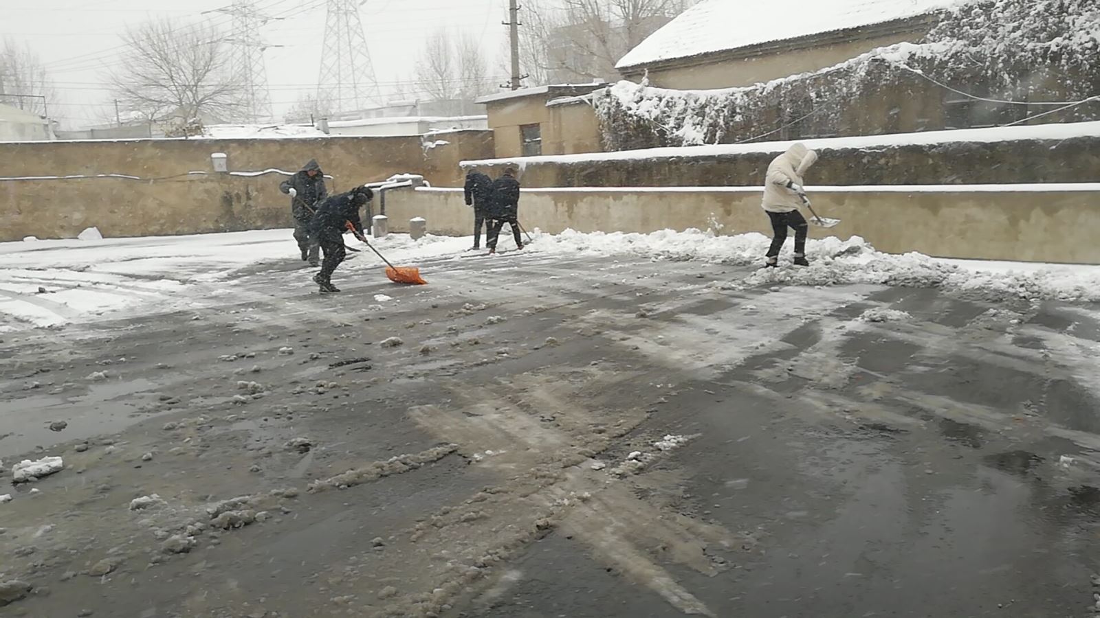 大雪紛飛,暖不盡的同事情。各場站厚厚的積雪嚴重影響車輛進出場安全,各分公司積極組織無班駕駛員對其積雪進行清理,大家踴躍報名,干的熱火朝天,有的撒融雪劑、有的拿掃把、有的用雪鏟,大家分工協(xié)作,不多會兒各場站內(nèi)的積雪就被清理干凈了。