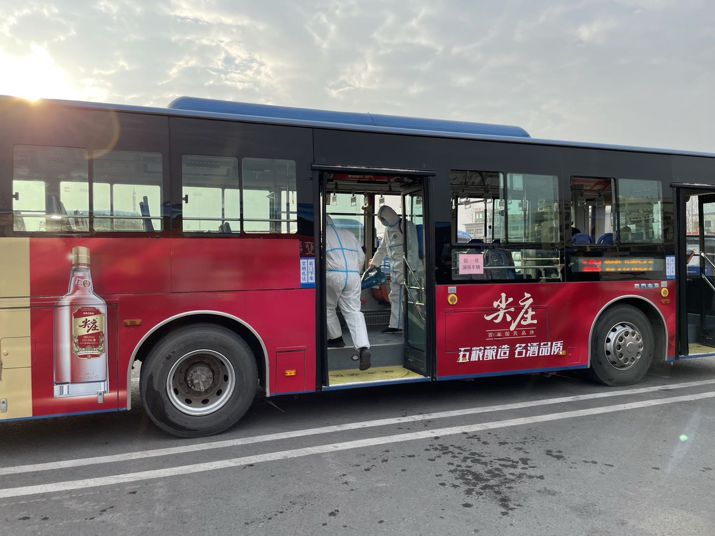 “報告,陳經(jīng)理,我是20路駕駛員周卓文,現(xiàn)在火車站上行方向站點,車廂內(nèi)共有乘客10名,其中有1名中年男性乘客從前門上車,對其測量體溫時,發(fā)現(xiàn)該名乘客體溫達(dá)到37.5℃,我們已經(jīng)在車廂內(nèi)自行隔離,請派人來幫助我們。”“這位乘客,你的體溫偏高,請配合我們的隔離處置工作。”這是12月23日公交集團(tuán)公交事業(yè)一部開展防疫應(yīng)急處置演練的生動場景。