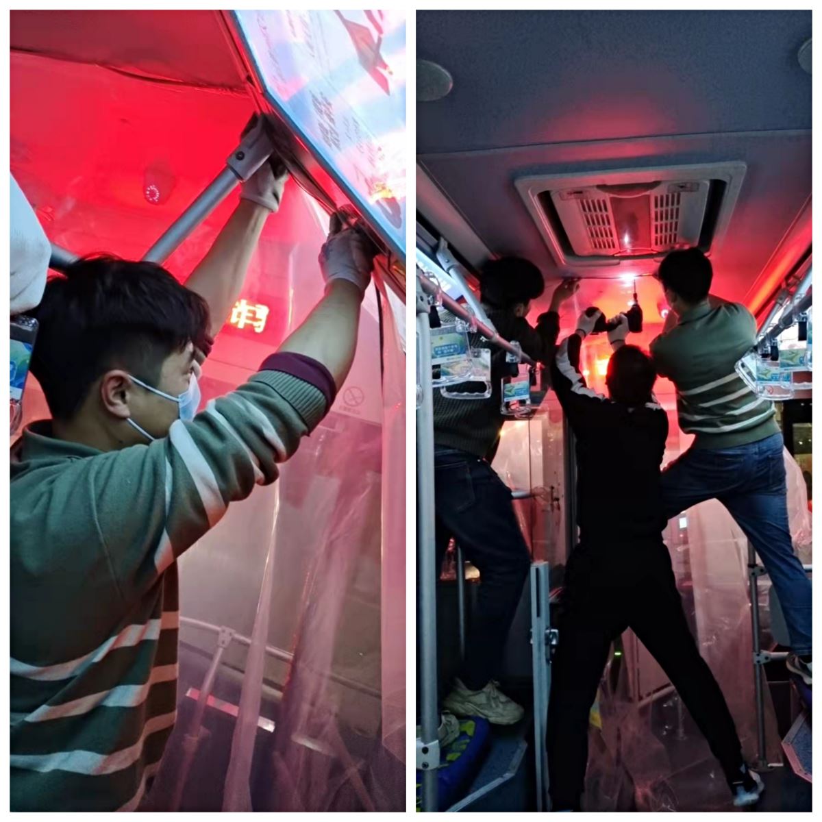 黨員先行,公交集團(tuán)機(jī)務(wù)技術(shù)事業(yè)部連夜為疫情轉(zhuǎn)運(yùn)車輛安裝防護(hù)膜