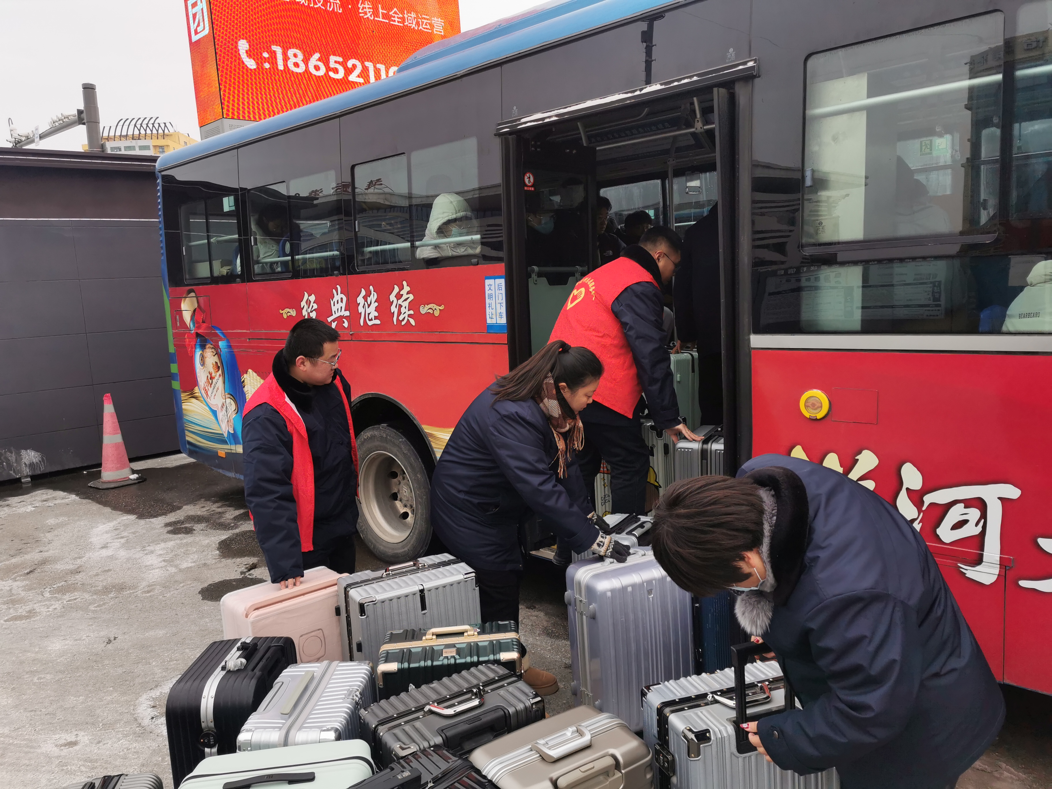 為確保定制專線運(yùn)營安全便捷,運(yùn)營、安全、機(jī)務(wù)部門與各分公司相互配合,精心組織,各分公司分別挑選6-8名優(yōu)秀駕駛員,組織12-15名后服保障人員,為學(xué)生指引乘車位置,提供乘車咨詢、搬拿行李箱等各項(xiàng)暖心服務(wù)。