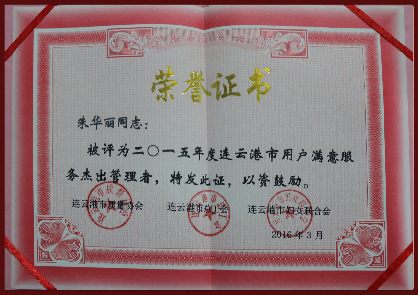 來源:新浦公司 作者:胡秀琴 根據(jù)“關于組織開展2015年度連云港市用戶滿意服務之星活動的通知”(連質(zhì)協(xié)[2015]25號)要求,經(jīng)過材料審核,現(xiàn)場調(diào)查和專家評審,公交新浦公司朱華麗同志榮獲“2015年連云港市用戶滿意服務杰出管理者”稱號。