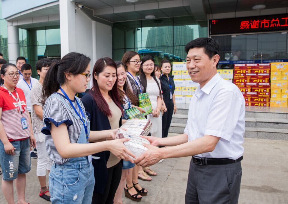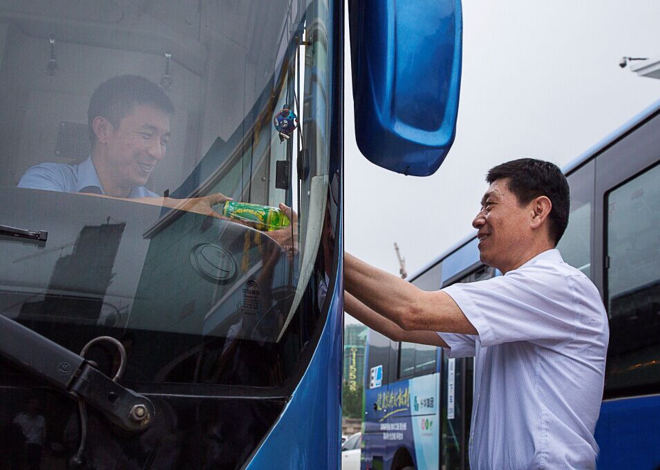 來源:黨群部 作者:雷蕾 7月15日上午,市總工會(huì)紀(jì)檢組長朱斌、勞工部部長吉文明等一行冒著高溫看望慰問堅(jiān)守崗位的海通公交一線員工,他們把上級(jí)領(lǐng)導(dǎo)的關(guān)愛和夏日的清涼送到公交員工的心里。交通控股集團(tuán)工會(huì)主席王中永、副主席張曉紅等參加慰問。 我市即將迎來高溫天氣,海通公交公司千名員工戰(zhàn)高溫、斗酷暑,奮戰(zhàn)運(yùn)營第一線,為廣大乘客的出行付出了艱辛的努力。市總工會(huì)領(lǐng)導(dǎo)心系公交員工,他們冒著高溫來到海通公交公司,給一線公交員工送來飲料、綠豆、白糖、毛巾等,感謝公交員工在高溫酷暑條件下為廣大市民出行所作的突出貢獻(xiàn),并詳細(xì)詢問了他們?cè)诟邷仄陂g的工作和生活情況,反復(fù)囑咐他們?cè)谙募疽貏e注意身體健康,牢記安全生產(chǎn),做好本職工作。并叮囑隨行的企業(yè)領(lǐng)導(dǎo),一定要把夏季“送清涼、送安全、送法律”活動(dòng)落到實(shí)處,讓廣大員工真正感受到組織的關(guān)愛。