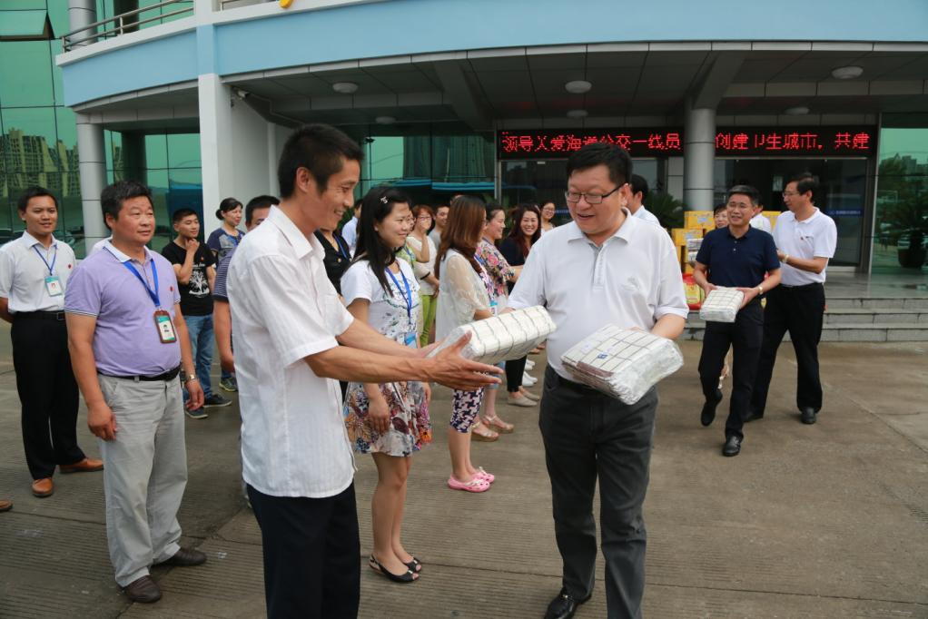 7月26日下午,交通控股集團(tuán)黨委書(shū)記、董事長(zhǎng)劉永能,黨委副書(shū)記、總經(jīng)理仲偉濤,工會(huì)主席王中永等集團(tuán)領(lǐng)導(dǎo)冒著高溫來(lái)到海通公交公司,親切看望慰問(wèn)了高溫下堅(jiān)守崗位的公交一線(xiàn)員工,為他們送去綠豆、白糖、純凈水、飲料等防暑降溫物品,并叮囑他們注意防暑降溫,以良好的狀態(tài)投入到工作中去,做好安全服務(wù)工作,服務(wù)好廣大乘客。劉永能等領(lǐng)導(dǎo)叮囑隨行的公交公司領(lǐng)導(dǎo),一定要關(guān)心員工的身心健康,尤其要做好夏季的防暑降溫工作,把“送清涼、送安全、送法律”活動(dòng)落到實(shí)處,讓廣大員工真正感受到組織的關(guān)愛(ài)。