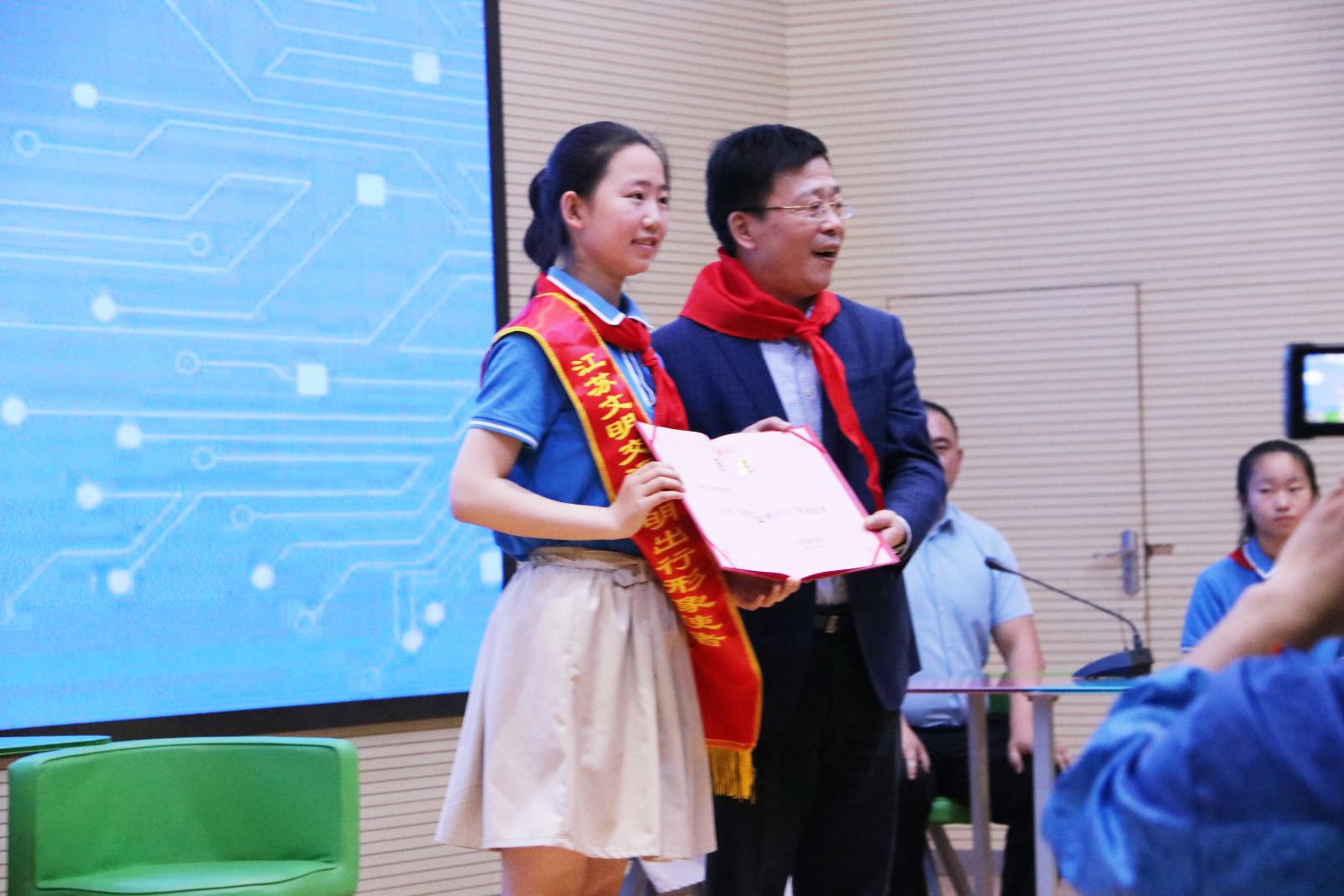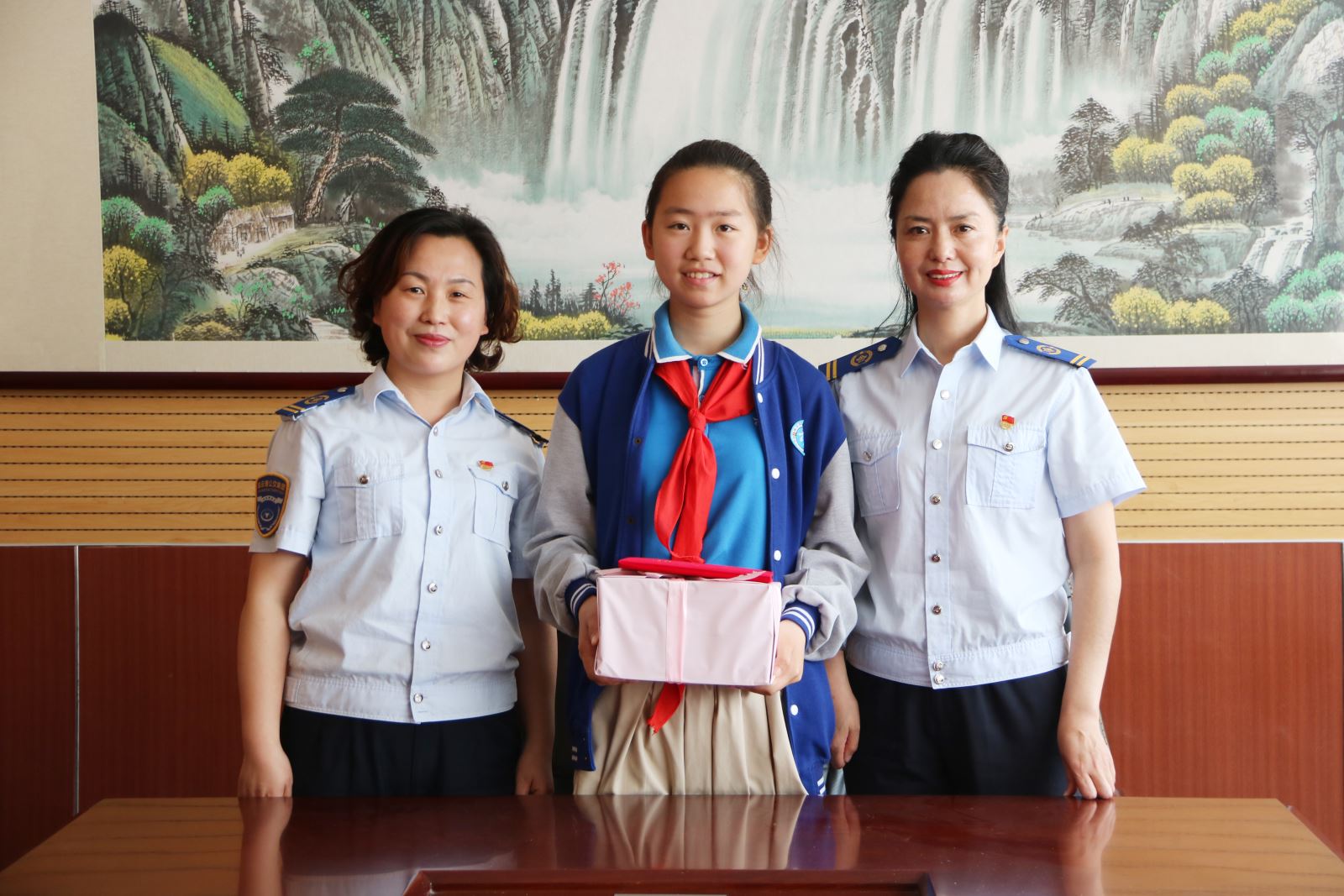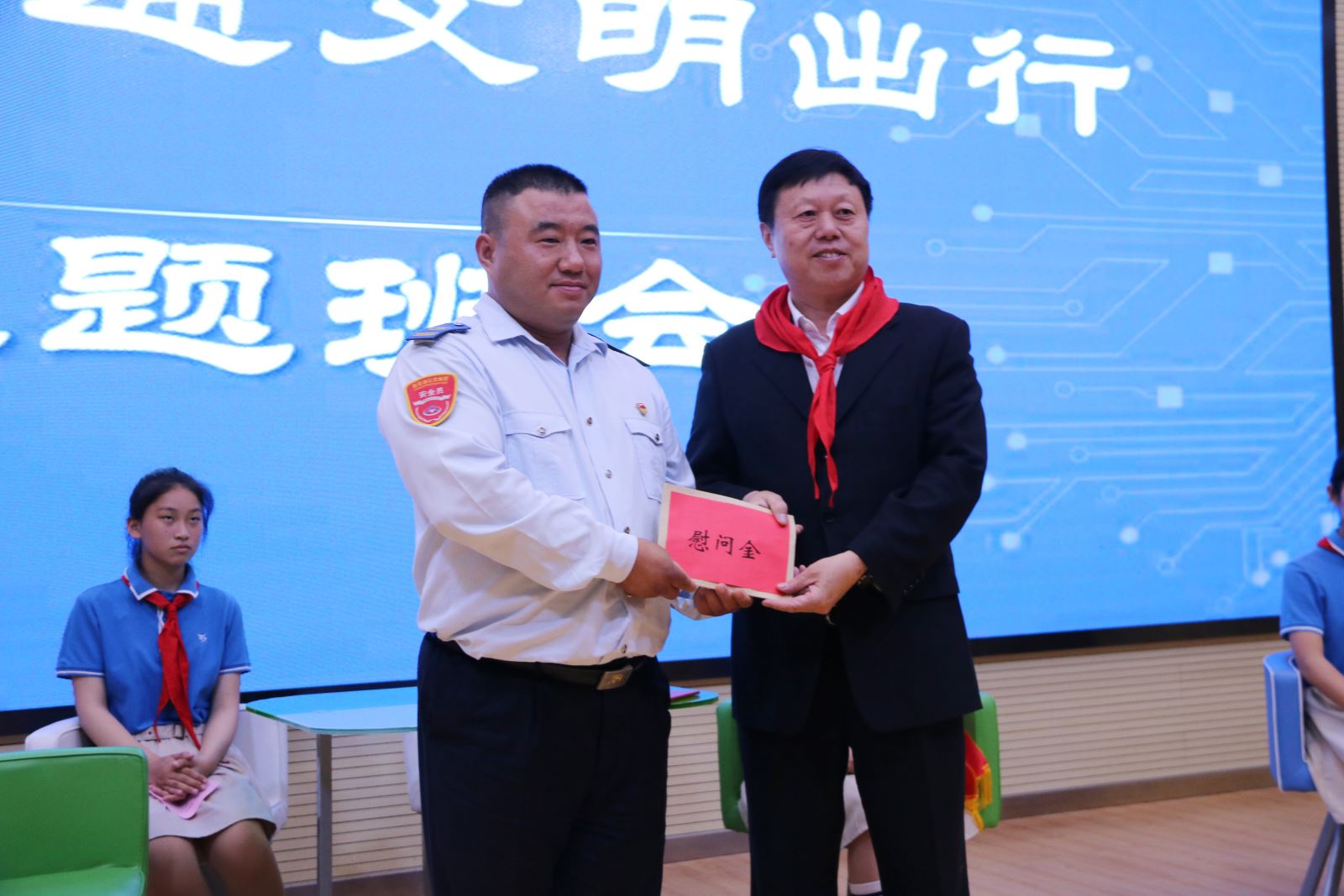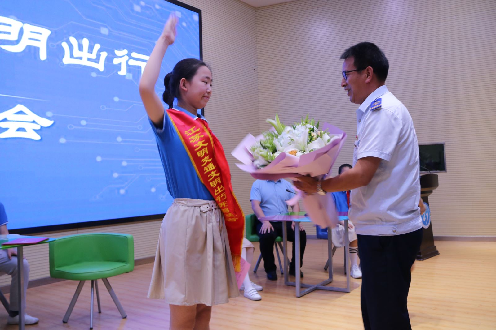 5月30日,江蘇省交通運輸廳黨組成員、副廳長金凌,廳副巡視員、機關(guān)黨委書記陳萍 , 連云港市人民政府副市長陳書軍及市公交集團黨委書記、總經(jīng)理周文君一行來到海寧小學(xué)看望范夢茹同學(xué),聘請她為“江蘇‘文明交通文明出行’形象使者”,并通過開展主題班會的形式向同學(xué)們發(fā)出文明交通、文明出行的倡議,現(xiàn)場也對公交集團駕駛員李方毅進行了慰問獎勵?;顒雍?,公交集團也向范夢茹同學(xué)發(fā)出邀請,聘請她為公交集團“文明交通小使者”,為她送上了聘書與小禮物。