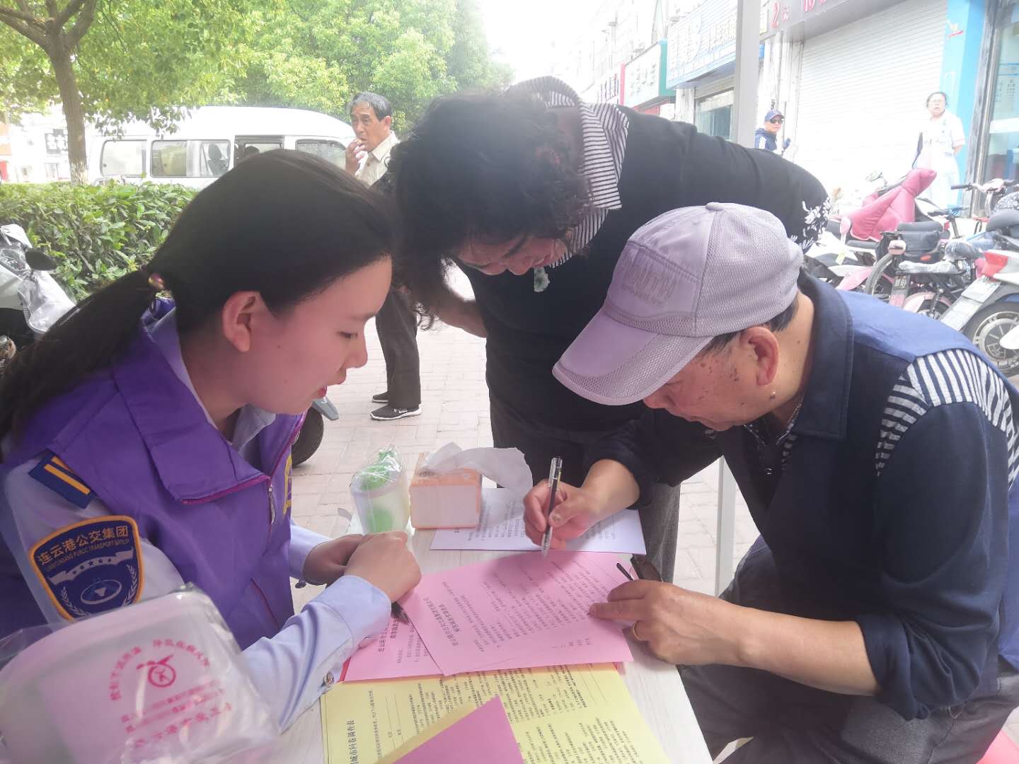 5月31日下午,公交集團(tuán)省級(jí)青年文明號(hào)——公交服務(wù)熱線5名志愿服務(wù)者來到海州區(qū)南極南路新世紀(jì)花園小區(qū)門口,開展紫云社區(qū)“凝聚青春力量,奏響文明樂章”百家社區(qū)志愿行第34站志愿服務(wù)活動(dòng)。