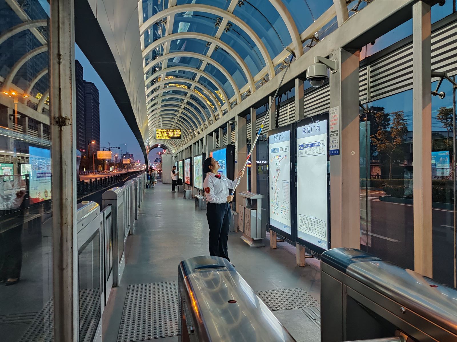 這個點,許多人已經(jīng)吃完了晚飯,有些甚至已經(jīng)和家人散完步準(zhǔn)備洗漱入睡,我們的站務(wù)員們還堅守在崗位上,送完常規(guī)線的最后一班乘客,她們還會迎來夜班線的第一班乘客。別看她們外表柔弱,關(guān)鍵時刻,她們也是為乘客化解過矛盾,給危在旦夕的乘客做出最快急救措施的人,她們是港城公交人里的鏗鏘玫瑰。