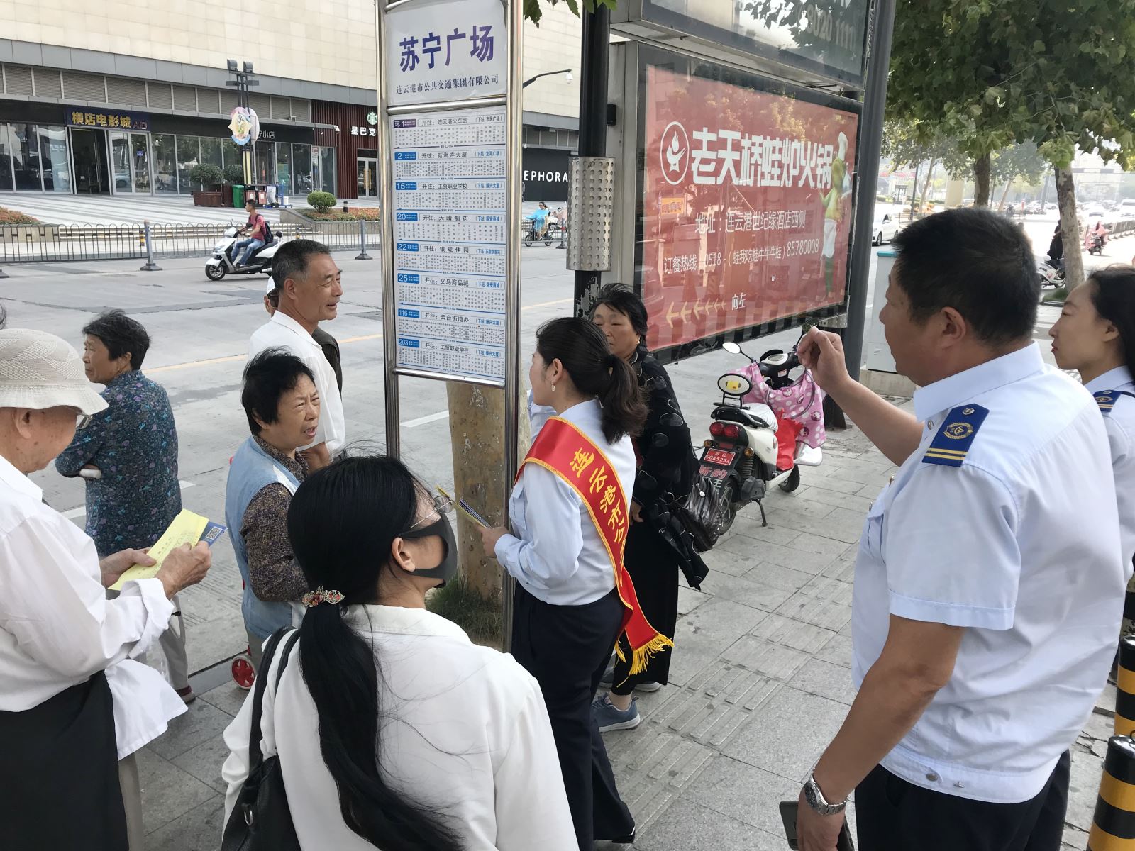 在海州客運(yùn)站、在海一方公園、市民廣場(chǎng)、龍河廣場(chǎng)4處BRT站臺(tái)以及嘉瑞寶廣場(chǎng)、購(gòu)物中心、第一人民醫(yī)院、蘇寧廣場(chǎng)、海州批發(fā)市場(chǎng)、步行東街等站6處常規(guī)公交站臺(tái),公交集團(tuán)安排40余名佩戴綬帶的工作人員作為志愿者,現(xiàn)場(chǎng)發(fā)放公交出行宣傳周倡議書(shū)1000余份、乘客滿意度調(diào)查表600余份,志愿者們還協(xié)助公交駕駛員積極維持車輛進(jìn)站秩序,引導(dǎo)乘客自覺(jué)排隊(duì)上、下車,主動(dòng)為老弱病殘?jiān)械忍厥獬丝吞峁┍憬莘?wù),倡導(dǎo)市民遵守乘車秩序,形成良好的社會(huì)風(fēng)尚。