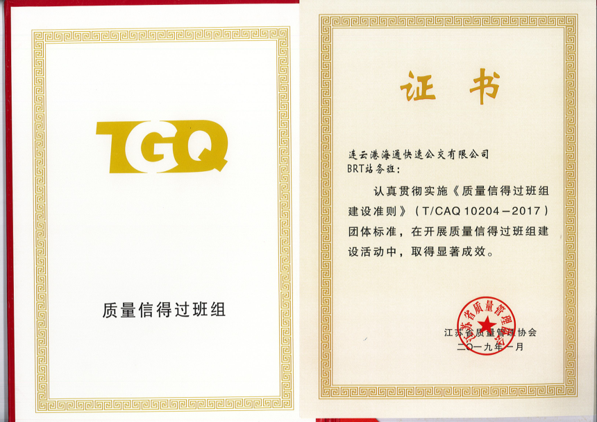 公交集團(tuán)快速公交事業(yè)部喜獲“連云港市質(zhì)量信得過班組”榮譽(yù)稱號(hào)