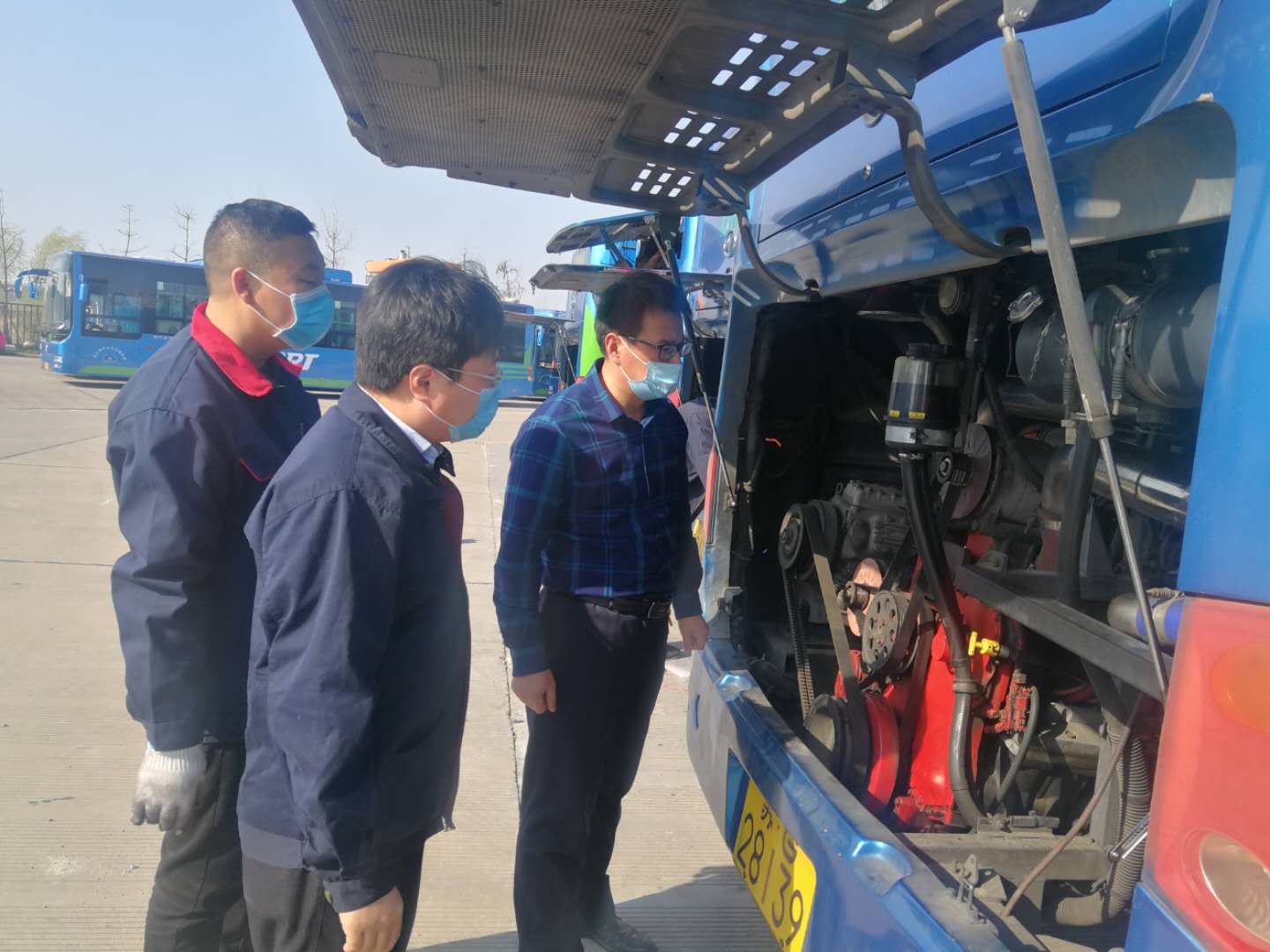 領(lǐng)導(dǎo)班子成員仔細(xì)查看了場站內(nèi)18米車的車況,重點(diǎn)檢查了車輛發(fā)動(dòng)機(jī)艙、剎車及打氣泵等位置,對18米車的修舊利廢、修理工作進(jìn)行了現(xiàn)場指導(dǎo)。周總對加氣站所在區(qū)域的安全距離提出具體部署:加氣站周圍50米內(nèi)要保持安全距離,禁止停放任何車輛,場站內(nèi)私家車及運(yùn)營車輛必須規(guī)范停放。